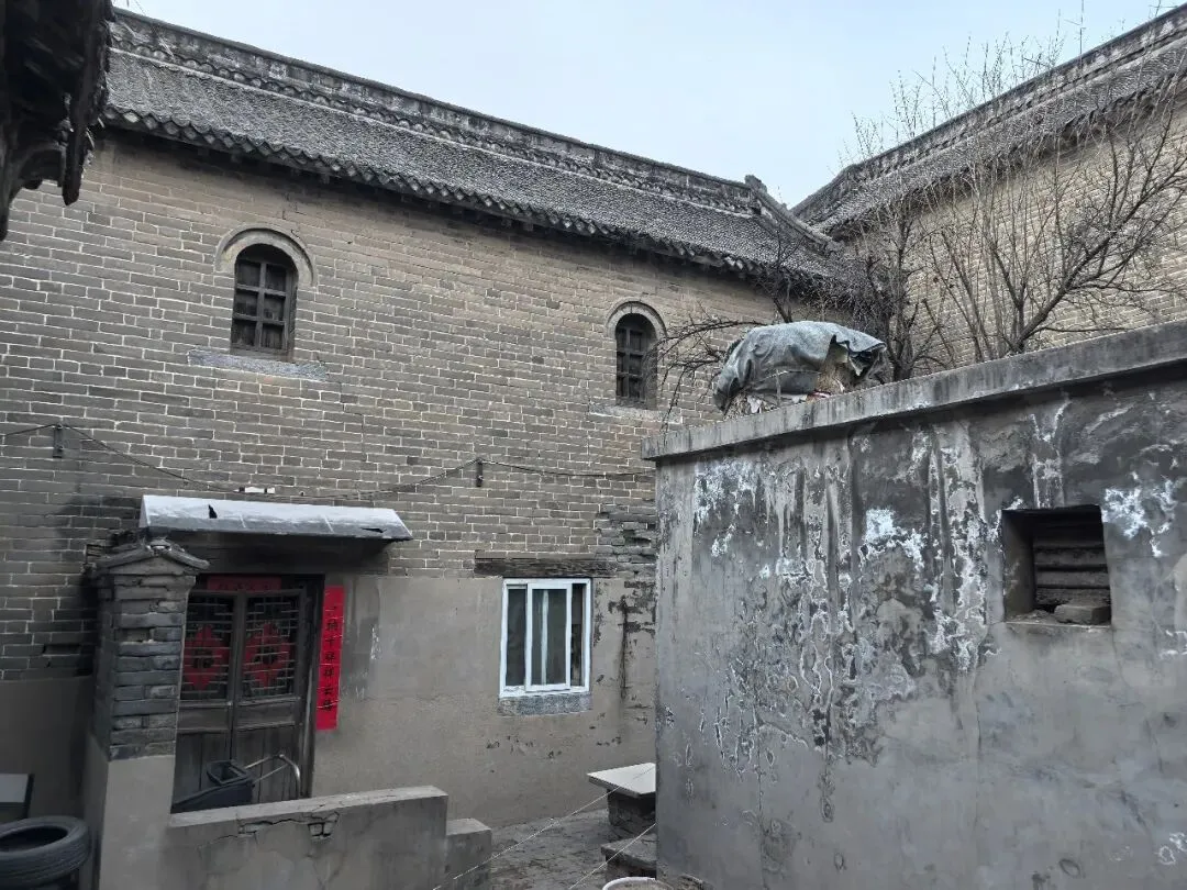 进入大院,脚下是裸露的黄土,眼前是枯黄的蒿草——一片“还算整洁的荒野”在眼前铺展开来。仿佛都市剧中一梦穿大清,不是宫斗剧的皇宫大殿,而是荒野中的寂寂官宅。院子中间是任家官宅,青砖白灰勾缝墙和灰瓦飞檐硬山顶相得益彰,加上荒野风,历史厚重感顿现。今古宅仅存两进院落,占地约1000平方米,呈“目”字形布局,坐北朝南,中轴对称,仍保留着清代官宅的规制与风骨。