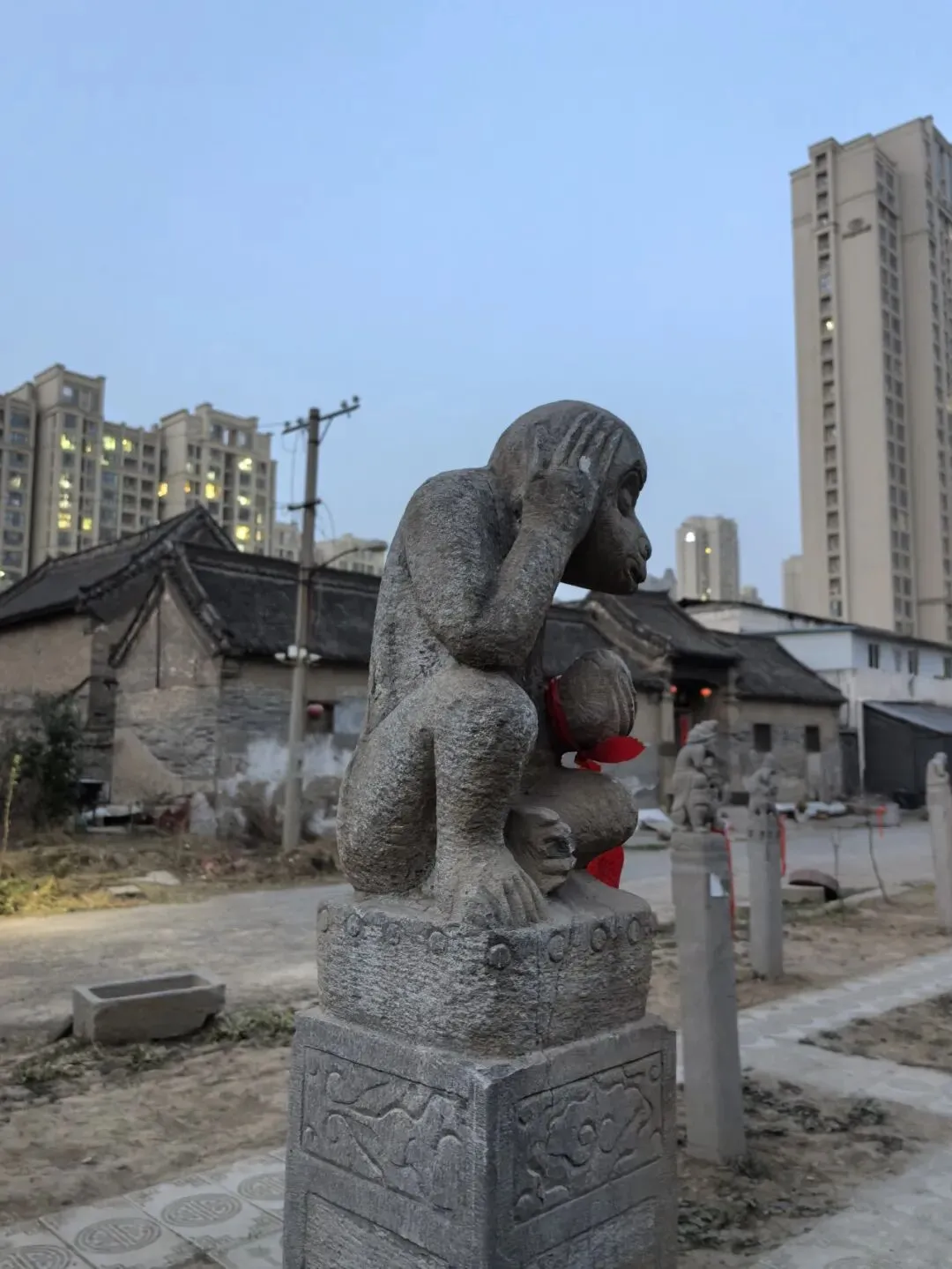 初六,和暖。春节的余韵还挂在街角,行人稀落,后半晌起了些许凉意。不耽误——骑上我的小电电,去访那座藏在城中的清代古宅——任家大院。严格来说,这座二品官宅所在的高新区,早已是郑州城区的一部分。但老郑州人习惯把京广铁路以西的中原区、高新区一带,统称为“西郊”——仿佛铁路是一道无形的界,界东是城,界西是郊,哪怕城市早已蔓延过了界。高新区雪松路白桦街交叉口(河南工业大学东门),向西走300米,路南,一个被一群高楼大厦包围的不起眼的院子里,隔着白色围墙,隐约可见几排低伏的灰瓦砖房。这儿就是任家大院。