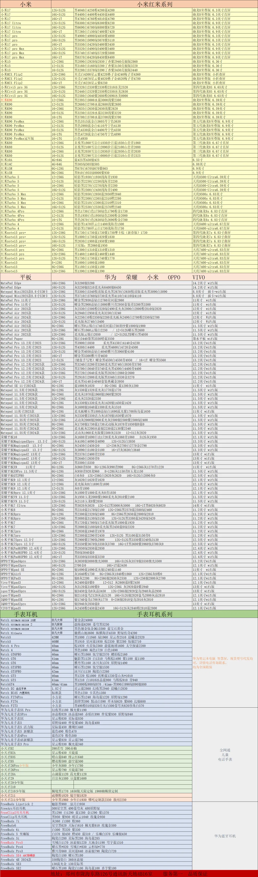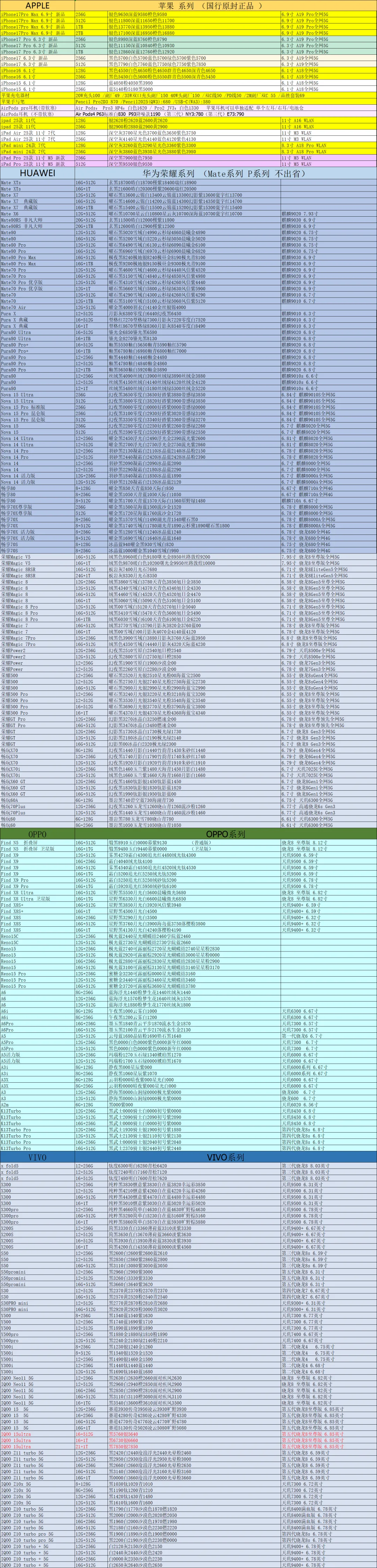 郑州和泓数码2026-3-3手机批发报价
