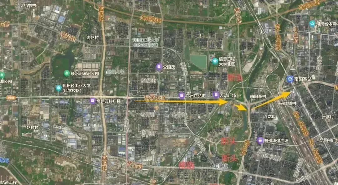 北三环到科学大道的快速化承诺成了折扣版,全程高架、下穿都未做到位;连霍高速与西四环之间居然缺少互通立交,常规拥堵成了家常便饭。再加上与主城区、西三环、河流、铁路、京广快速路多重切割,衔接质量一直不佳。东风路、金水路西延迟迟不顺,农业路、化工路高架仍在建设中,形成科学大道上长期的拥堵。表面看路网不少,实则断头路多,节点衔接不畅。2016年前后不少人调侃,从高新区进入主城区就像“进城”一样。