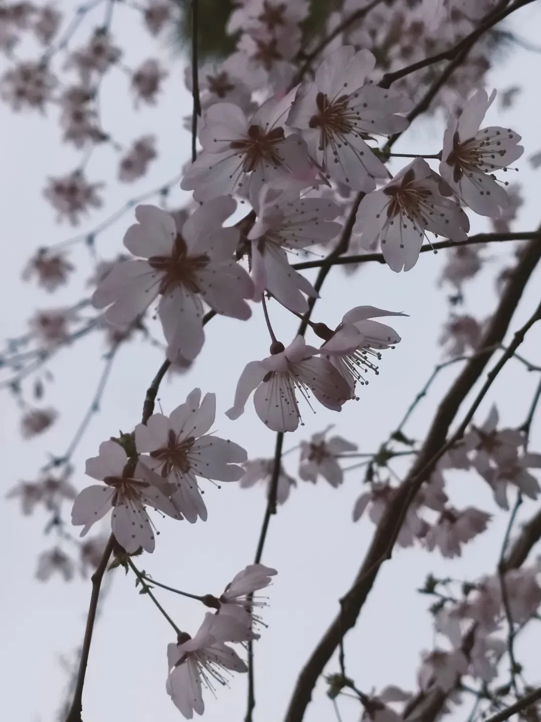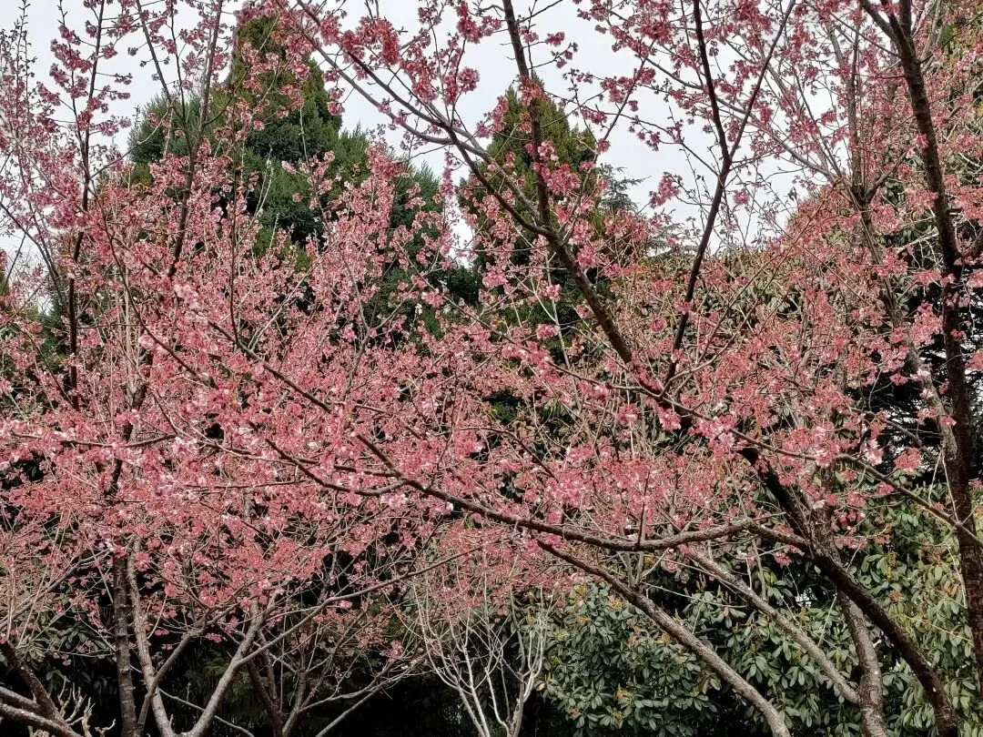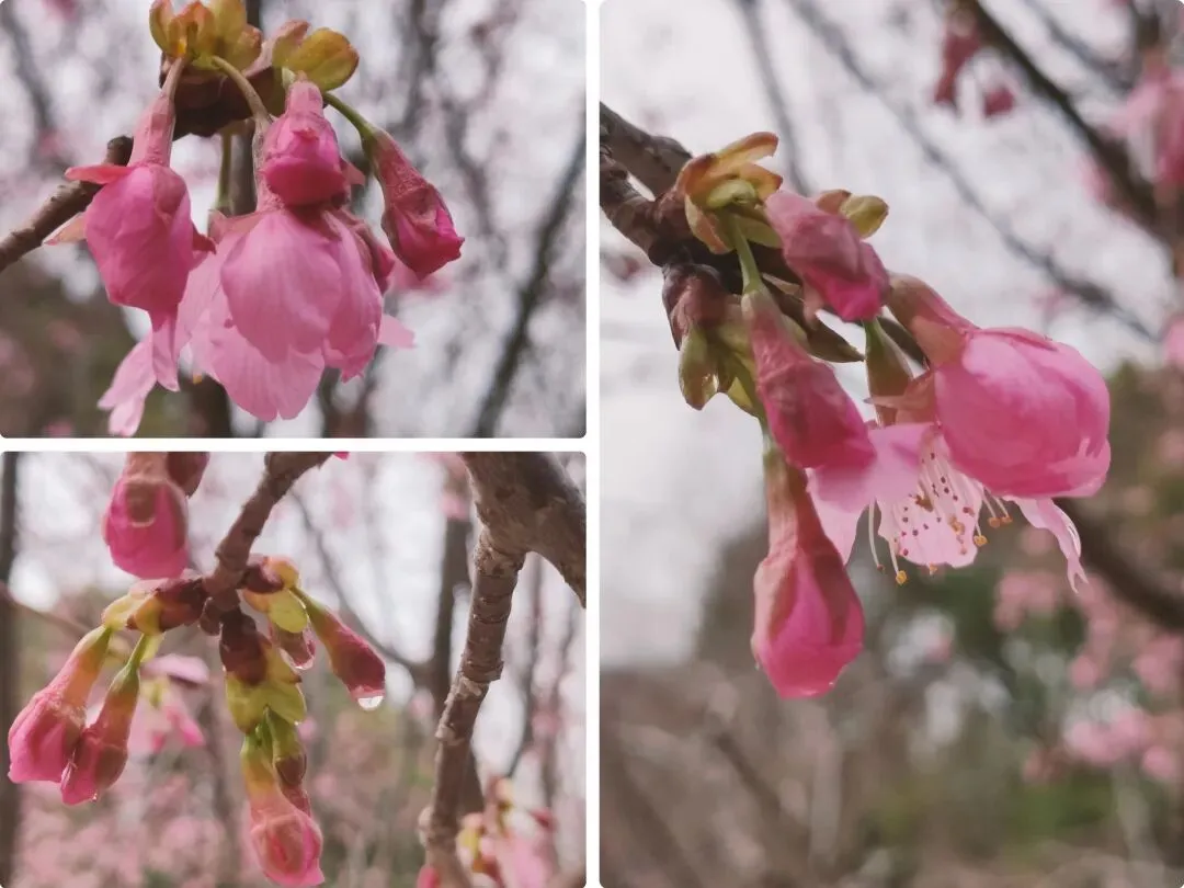 花期在冬季至早春,是较早绽放的樱花品种之一。花瓣呈粉白色,花蕊为黄色,花型饱满,花苞圆润可爱。