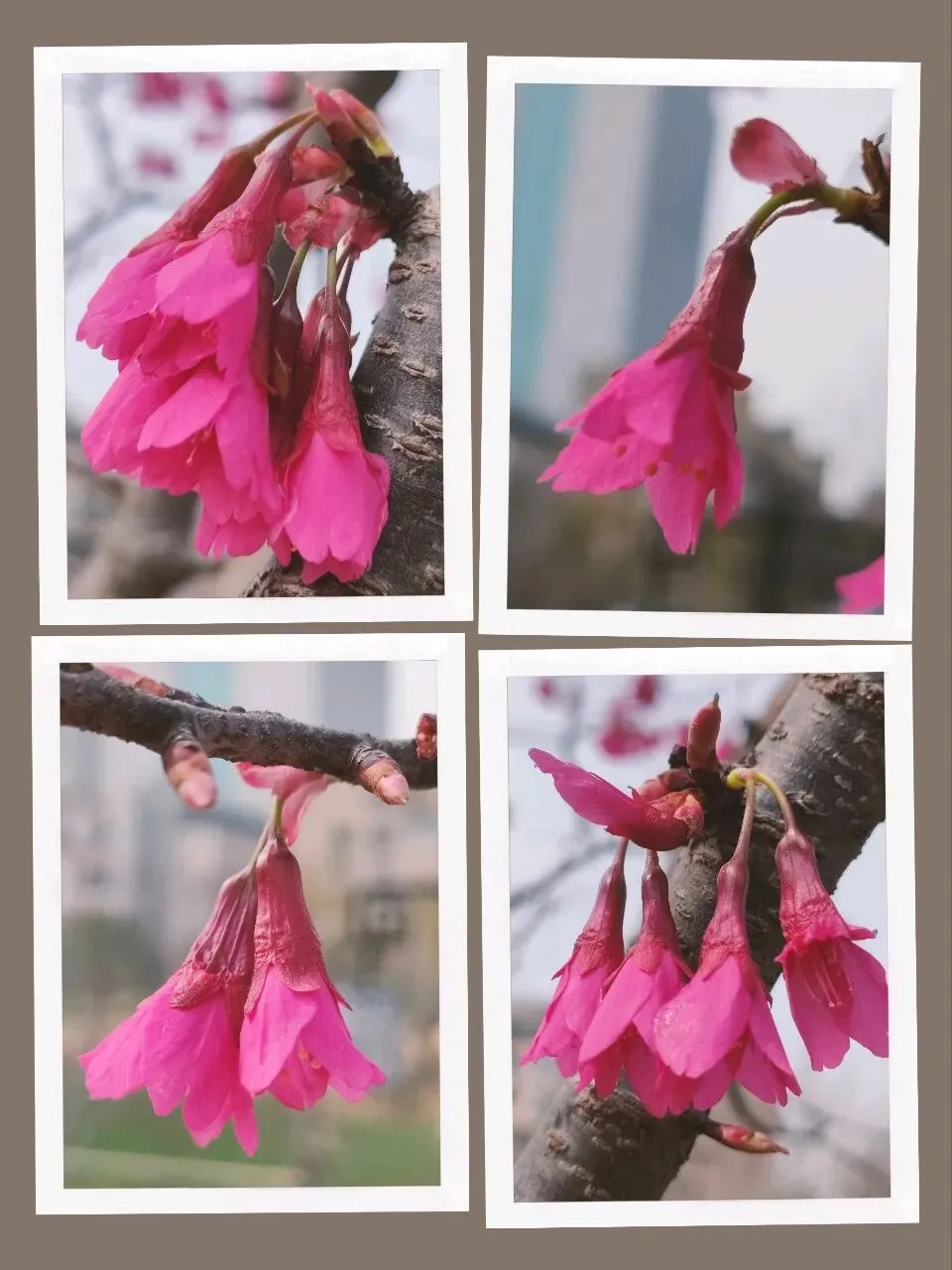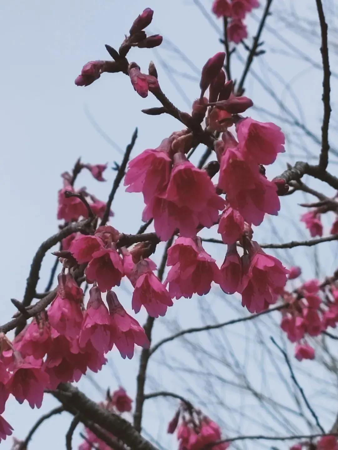 又叫钟花樱,花朵呈下垂的吊钟形(钟状),花瓣通常为5枚,先花后叶开放。这个品种的樱花花色妍丽,花型独特,