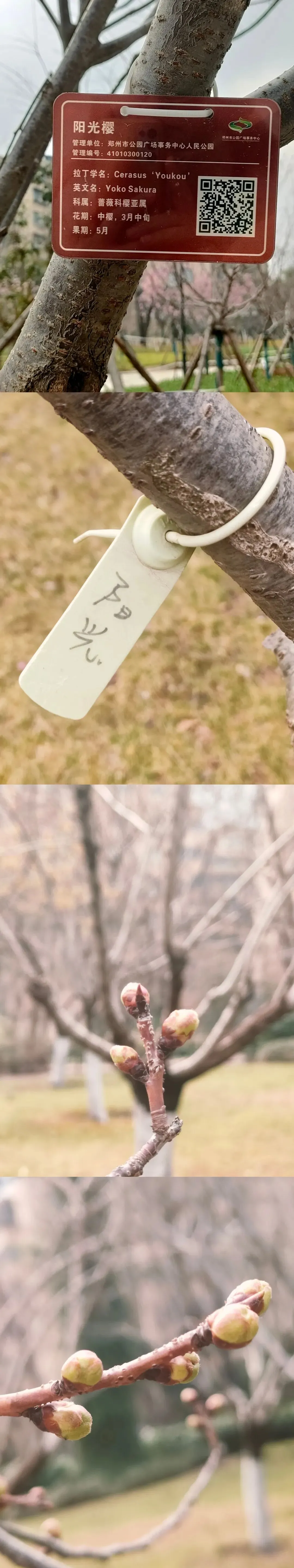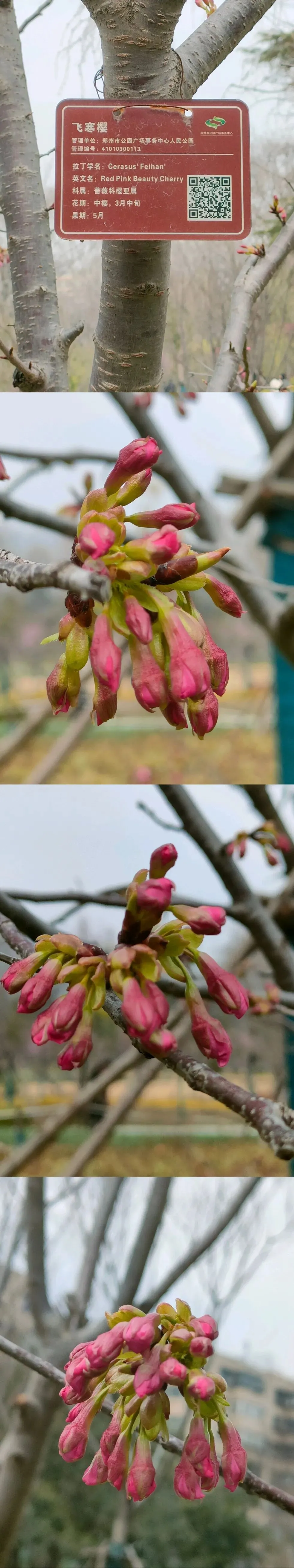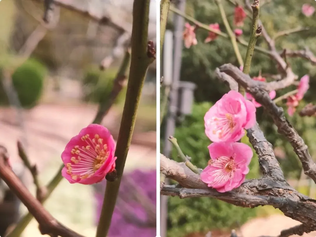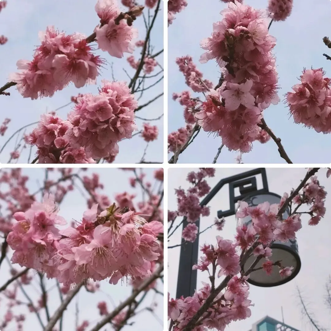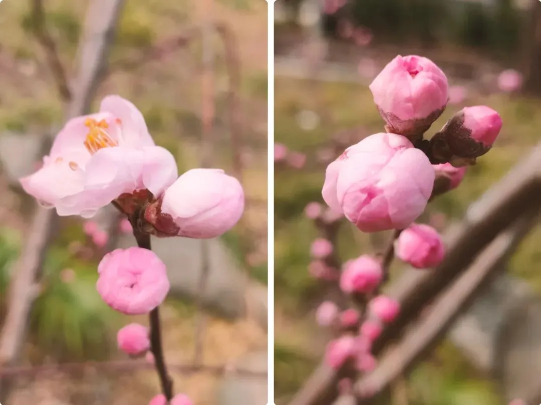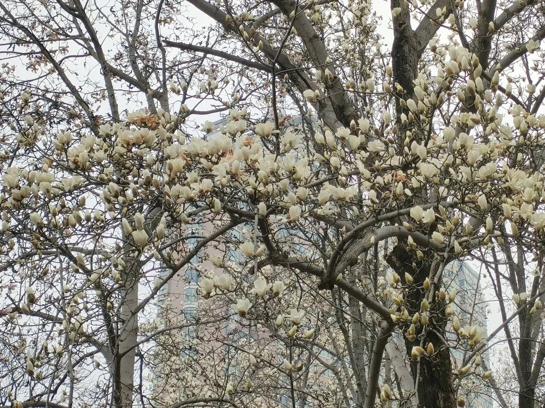 飞寒樱和阳光樱:已经结了花蕾,过几天应该就能开花了。松月樱、关山樱、普贤象樱并称为最常见的晚樱品种,被称作“晚樱三杰”或“晚樱三巨头”,花期要等到三月中旬。松月樱:因其花朵白中透粉,意境宛如“松间明月”而得名。关山樱:俗称“红缨”,是为日本晚樱的一个栽培变种,也是八重樱的代表性品种之一。普贤象樱:雌蕊叶化形成2片绿色叶片状突起,长5-8毫米,弯曲如象牙,是普贤菩萨坐骑的象征,为品种命名来源。望春玉兰:秋园西侧广场,集中种植数十株玉兰树,包括两棵标志性望春玉兰(一棵盛放、一棵花期末)。还有少数紫玉兰也值花期。高大的玉兰树花开得穰穰盈盈,感觉好震撼,拍了不少照片。美人梅:是梅花的观赏品种,粉白带晕的绽放花朵,还有饱满的粉色花苞,花蕊呈金黄色,它通常在早春开放,花型雅致,观赏价值较高。:花单生,多为粉红色,先于叶片开放,花梗极短或几乎无梗。枝条上生有细长的黄色花朵,花瓣顶端带有深色斑点,花型呈长卵形,花苞为绿色,和开放的黄花相映。羽衣甘蓝: