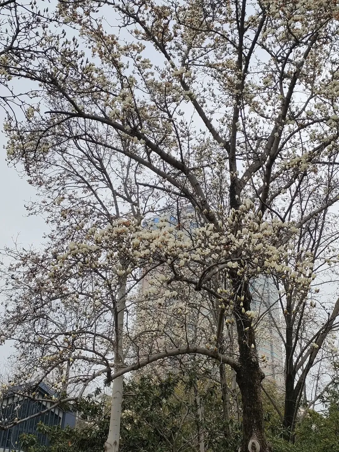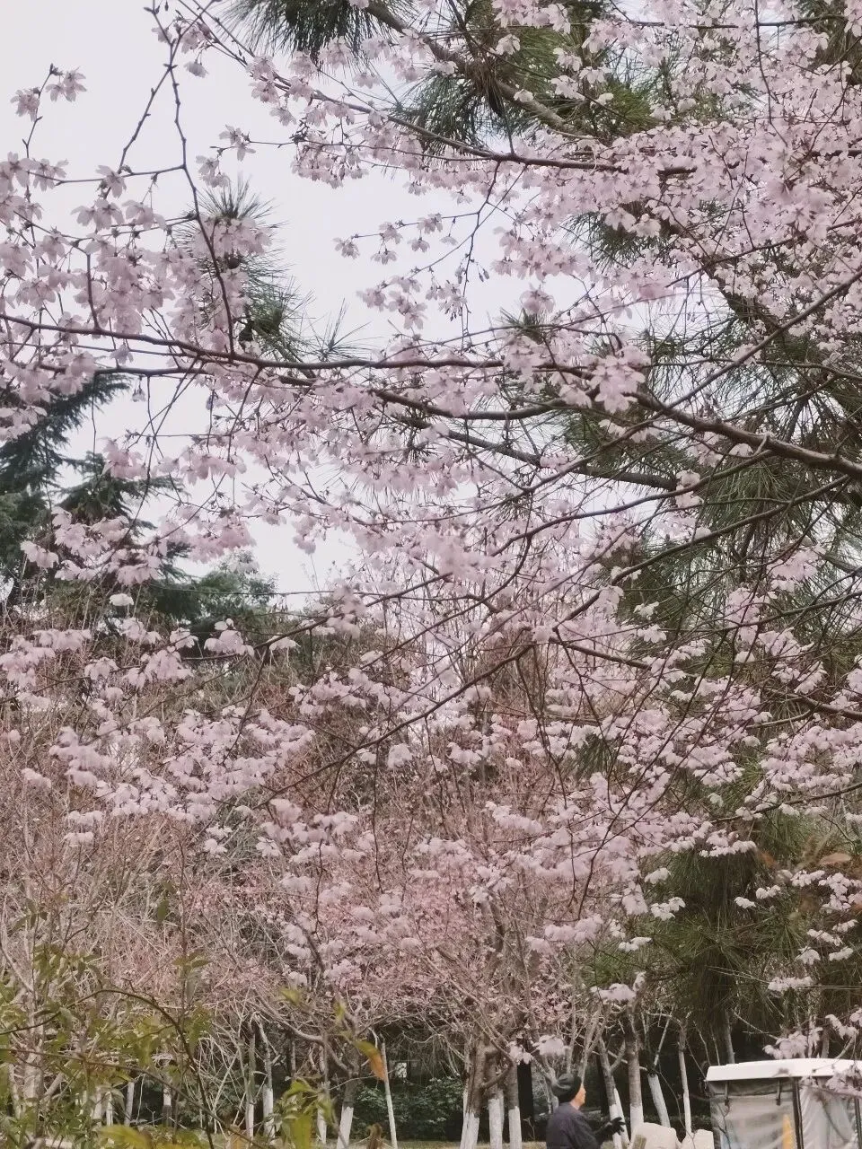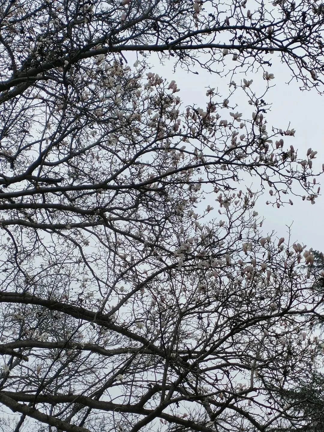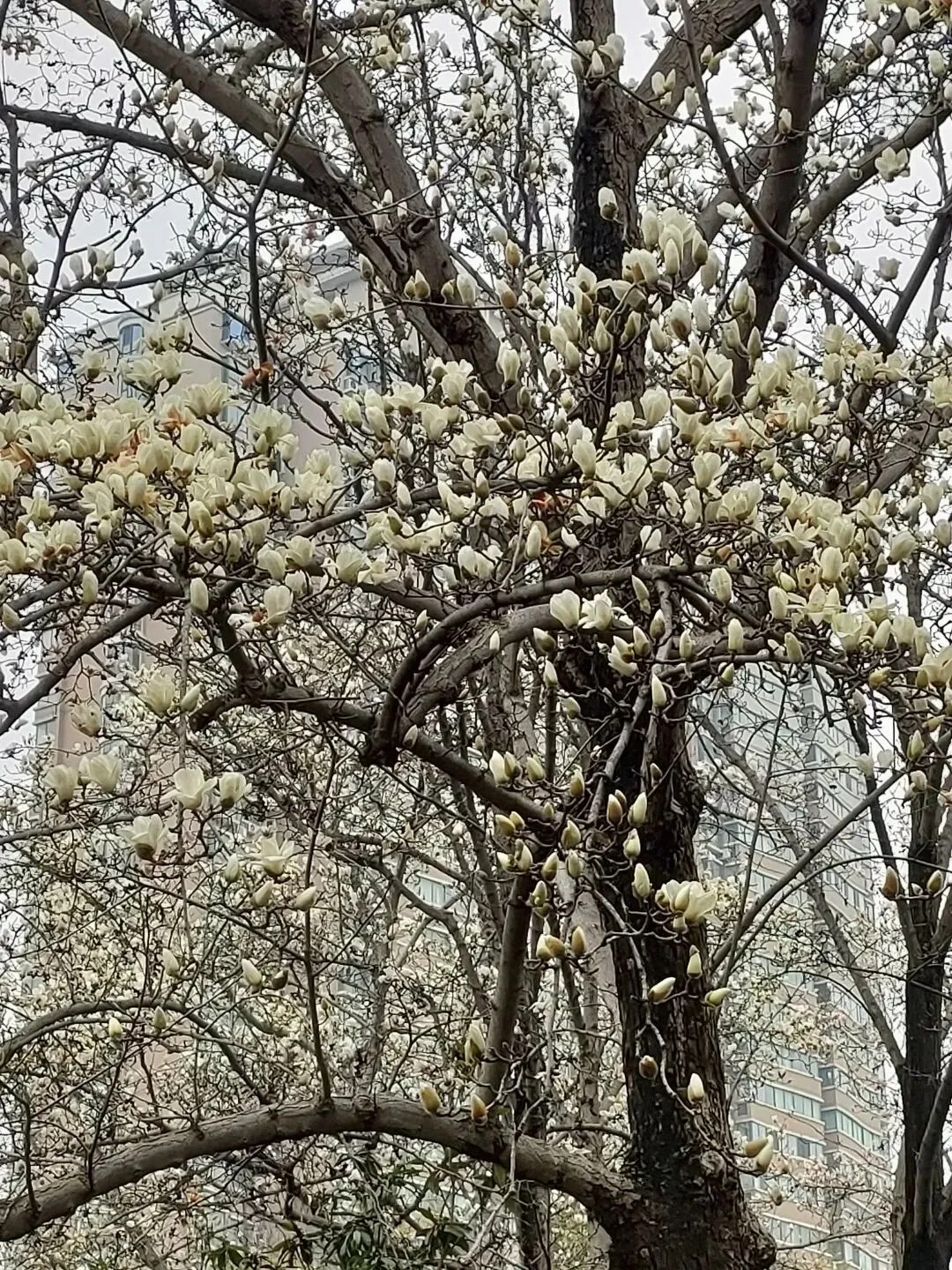 飞寒樱和阳光樱:已经结了花蕾,过几天应该就能开花了。松月樱、关山樱、普贤象樱并称为最常见的晚樱品种,被称作“晚樱三杰”或“晚樱三巨头”,花期要等到三月中旬。松月樱:因其花朵白中透粉,意境宛如“松间明月”而得名。关山樱:俗称“红缨”,是为日本晚樱的一个栽培变种,也是八重樱的代表性品种之一。普贤象樱:雌蕊叶化形成2片绿色叶片状突起,长5-8毫米,弯曲如象牙,是普贤菩萨坐骑的象征,为品种命名来源。望春玉兰:秋园西侧广场,集中种植数十株玉兰树,包括两棵标志性望春玉兰(一棵盛放、一棵花期末)。还有少数紫玉兰也值花期。高大的玉兰树花开得穰穰盈盈,感觉好震撼,拍了不少照片。美人梅:是梅花的观赏品种,粉白带晕的绽放花朵,还有饱满的粉色花苞,花蕊呈金黄色,它通常在早春开放,花型雅致,观赏价值较高。:花单生,多为粉红色,先于叶片开放,花梗极短或几乎无梗。枝条上生有细长的黄色花朵,花瓣顶端带有深色斑点,花型呈长卵形,花苞为绿色,和开放的黄花相映。羽衣甘蓝: