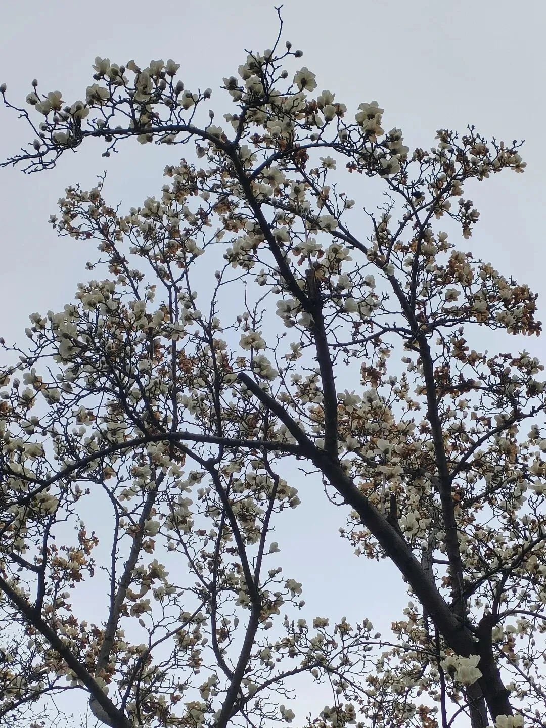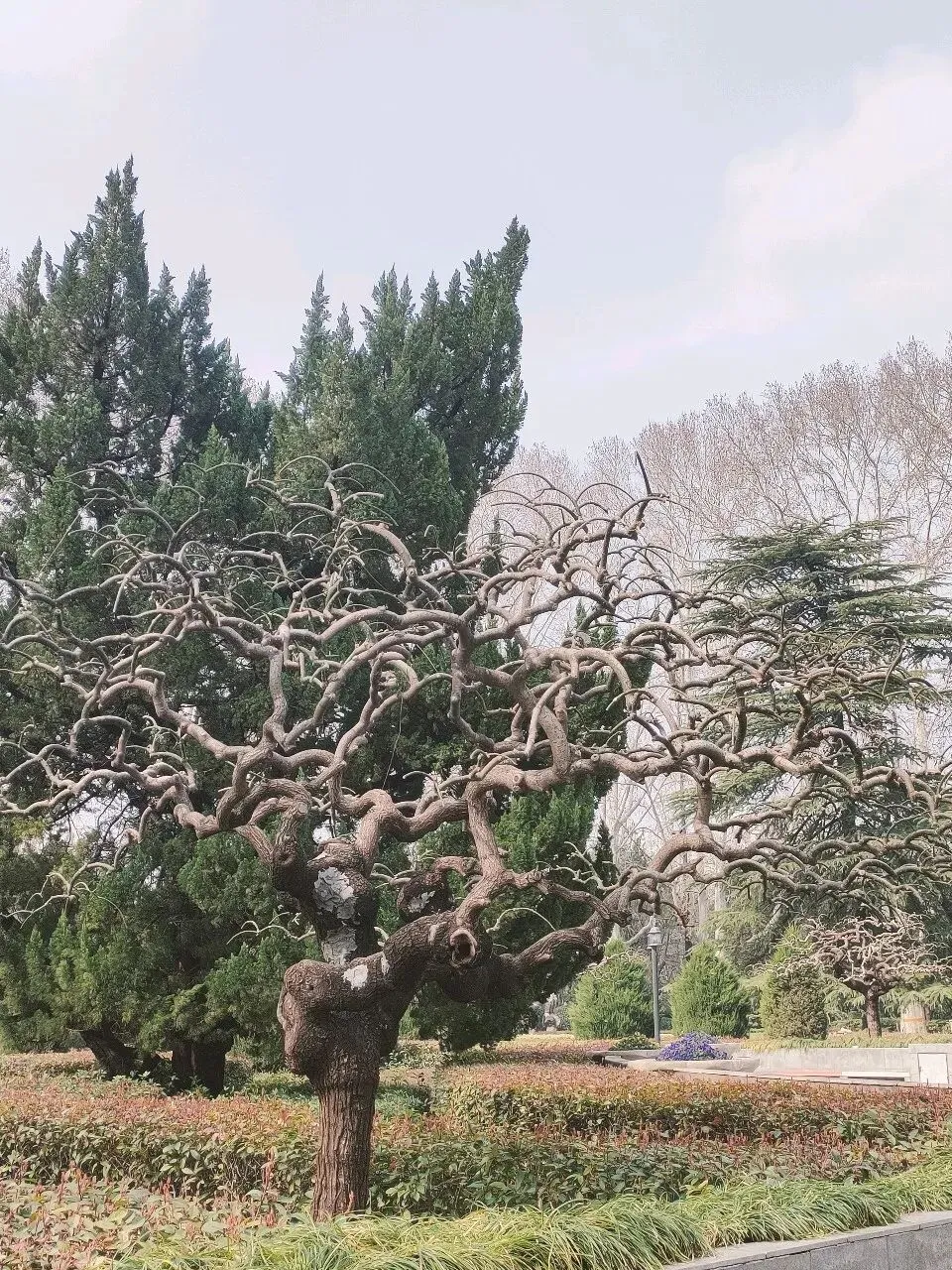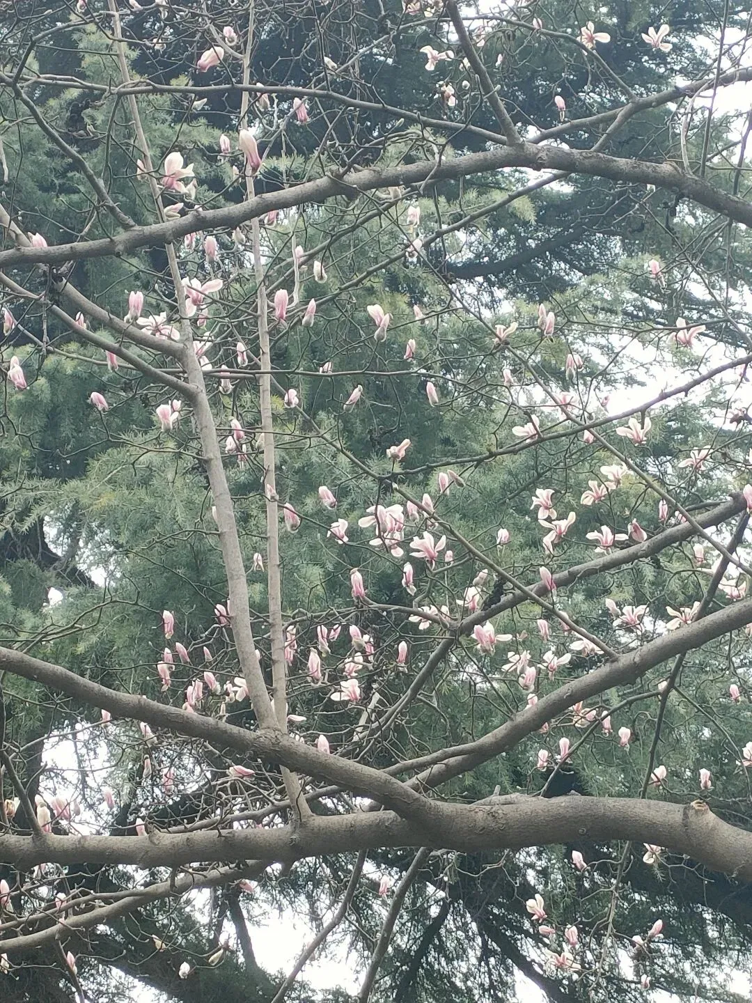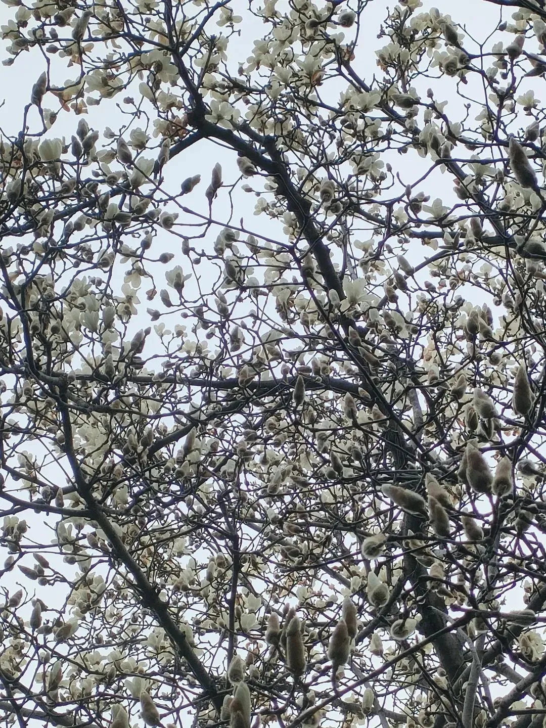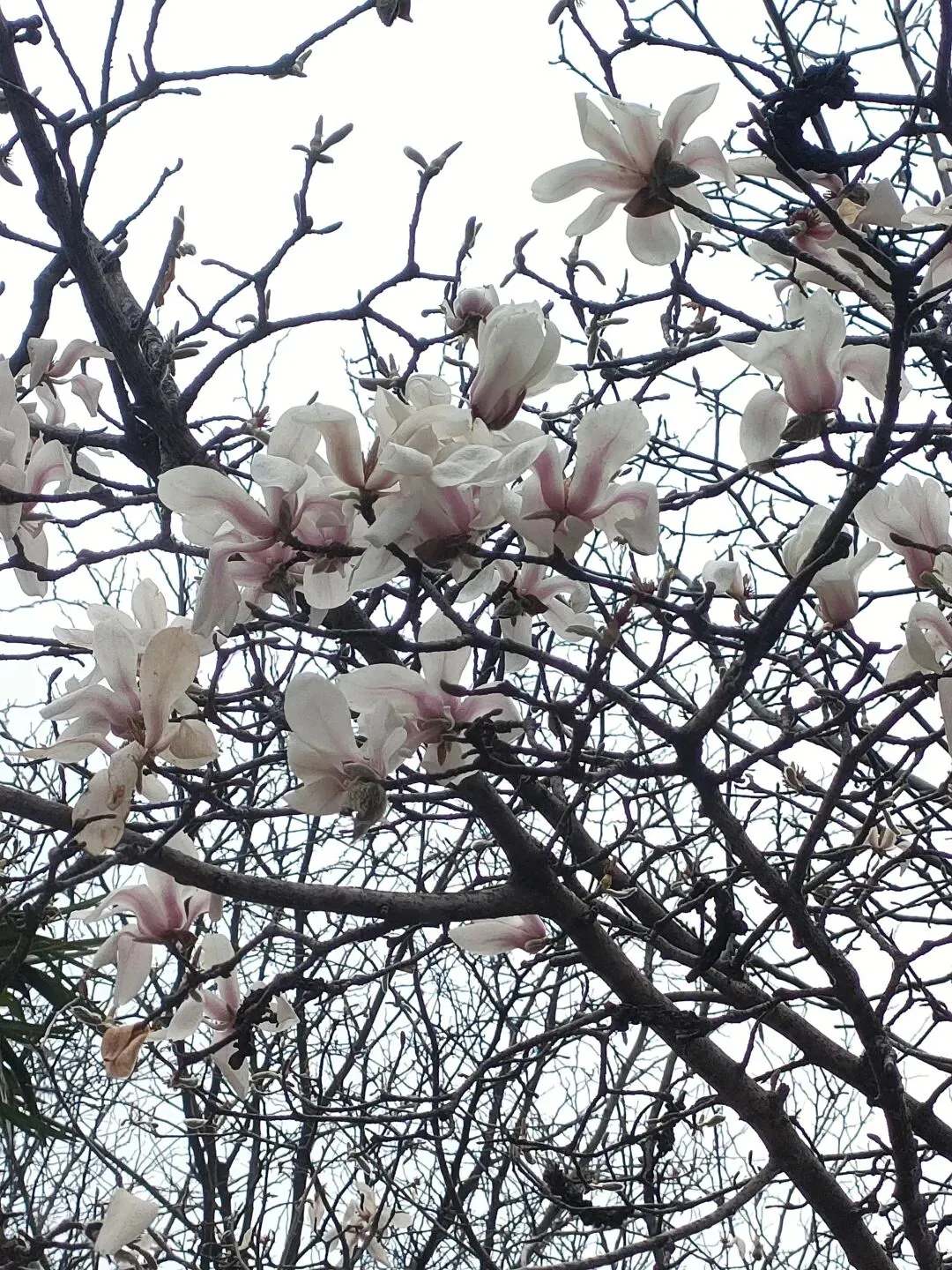 飞寒樱和阳光樱:已经结了花蕾,过几天应该就能开花了。松月樱、关山樱、普贤象樱并称为最常见的晚樱品种,被称作“晚樱三杰”或“晚樱三巨头”,花期要等到三月中旬。松月樱:因其花朵白中透粉,意境宛如“松间明月”而得名。关山樱:俗称“红缨”,是为日本晚樱的一个栽培变种,也是八重樱的代表性品种之一。普贤象樱:雌蕊叶化形成2片绿色叶片状突起,长5-8毫米,弯曲如象牙,是普贤菩萨坐骑的象征,为品种命名来源。望春玉兰:秋园西侧广场,集中种植数十株玉兰树,包括两棵标志性望春玉兰(一棵盛放、一棵花期末)。还有少数紫玉兰也值花期。高大的玉兰树花开得穰穰盈盈,感觉好震撼,拍了不少照片。美人梅:是梅花的观赏品种,粉白带晕的绽放花朵,还有饱满的粉色花苞,花蕊呈金黄色,它通常在早春开放,花型雅致,观赏价值较高。:花单生,多为粉红色,先于叶片开放,花梗极短或几乎无梗。枝条上生有细长的黄色花朵,花瓣顶端带有深色斑点,花型呈长卵形,花苞为绿色,和开放的黄花相映。羽衣甘蓝: