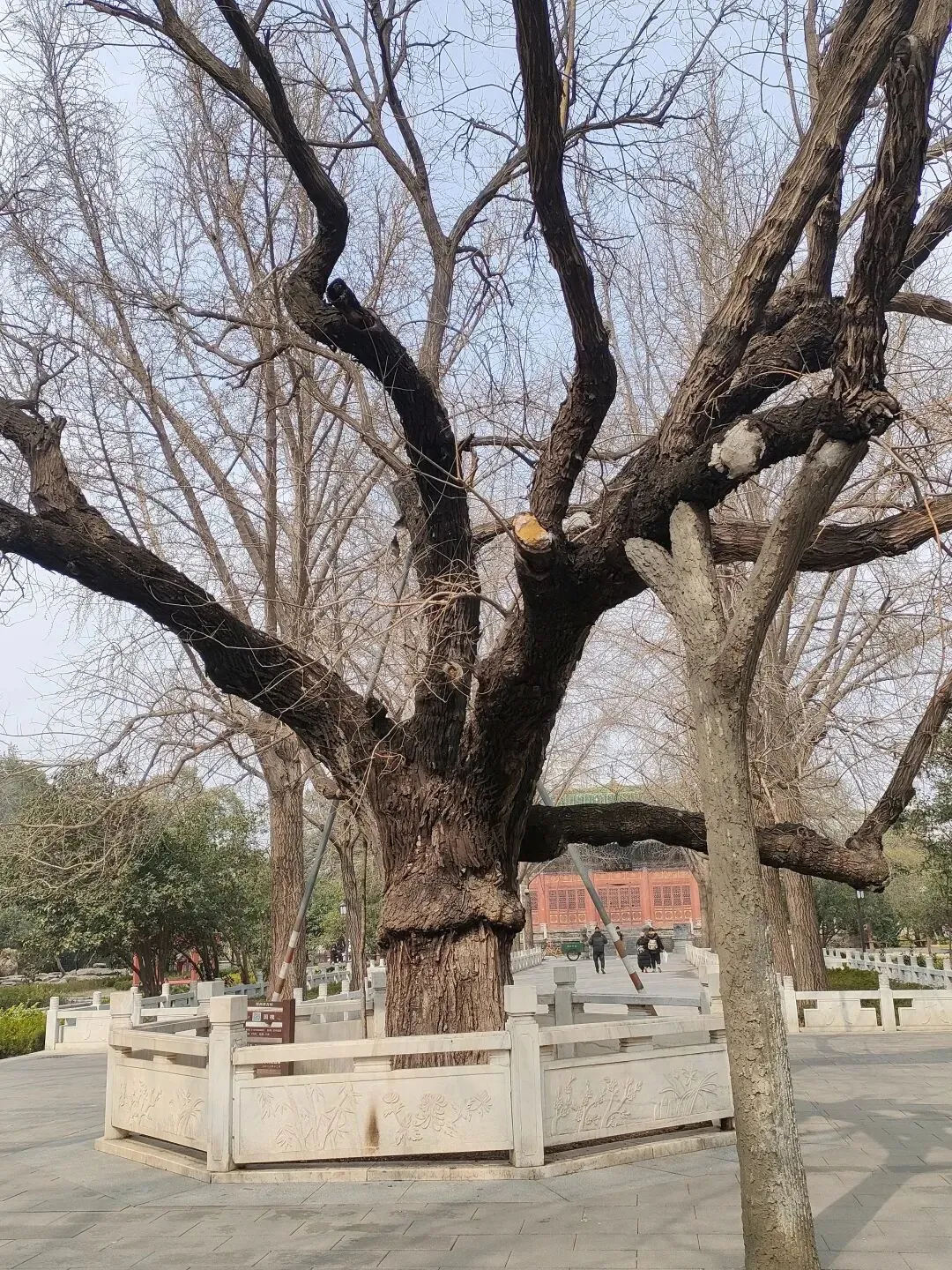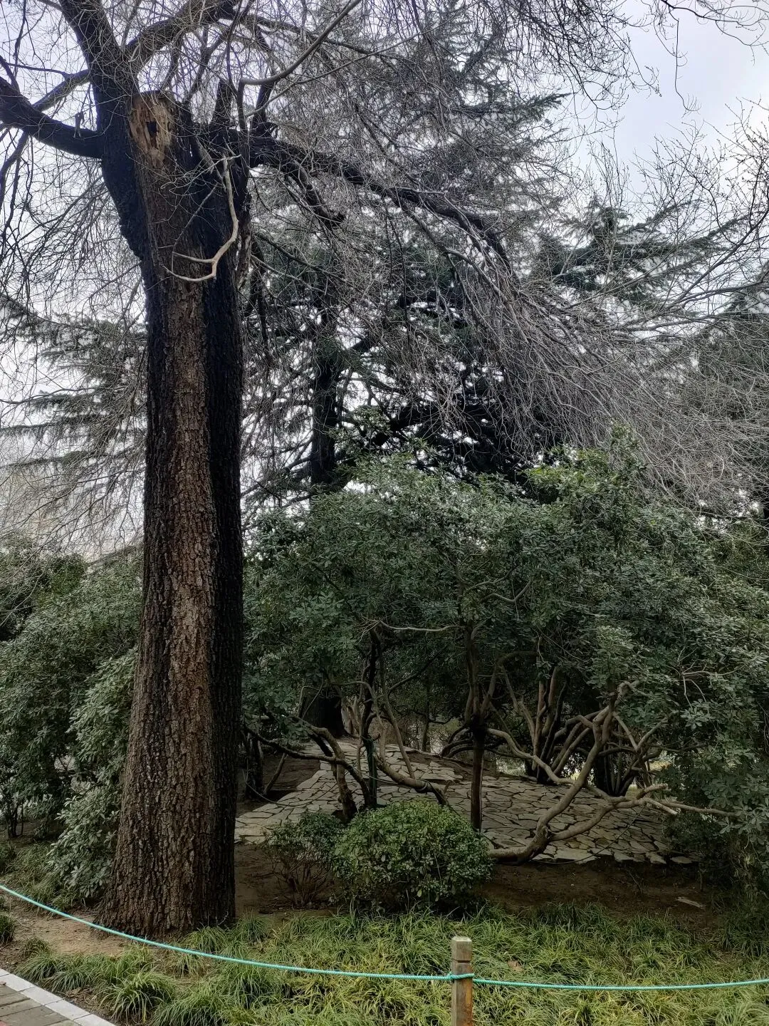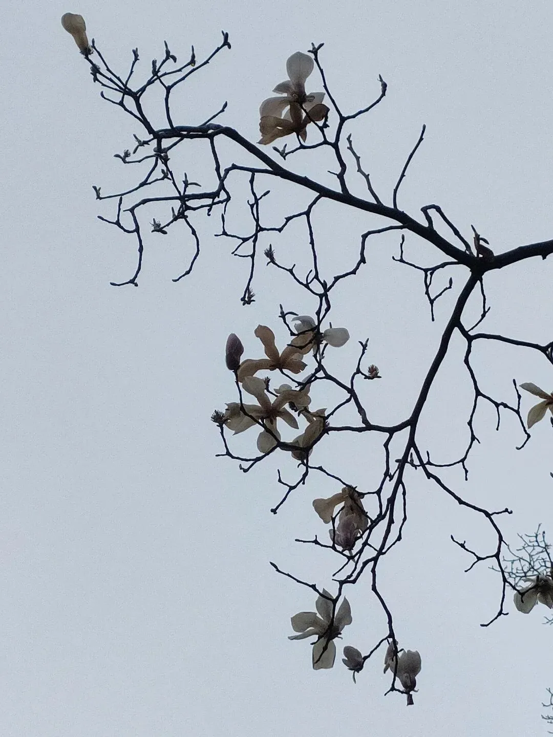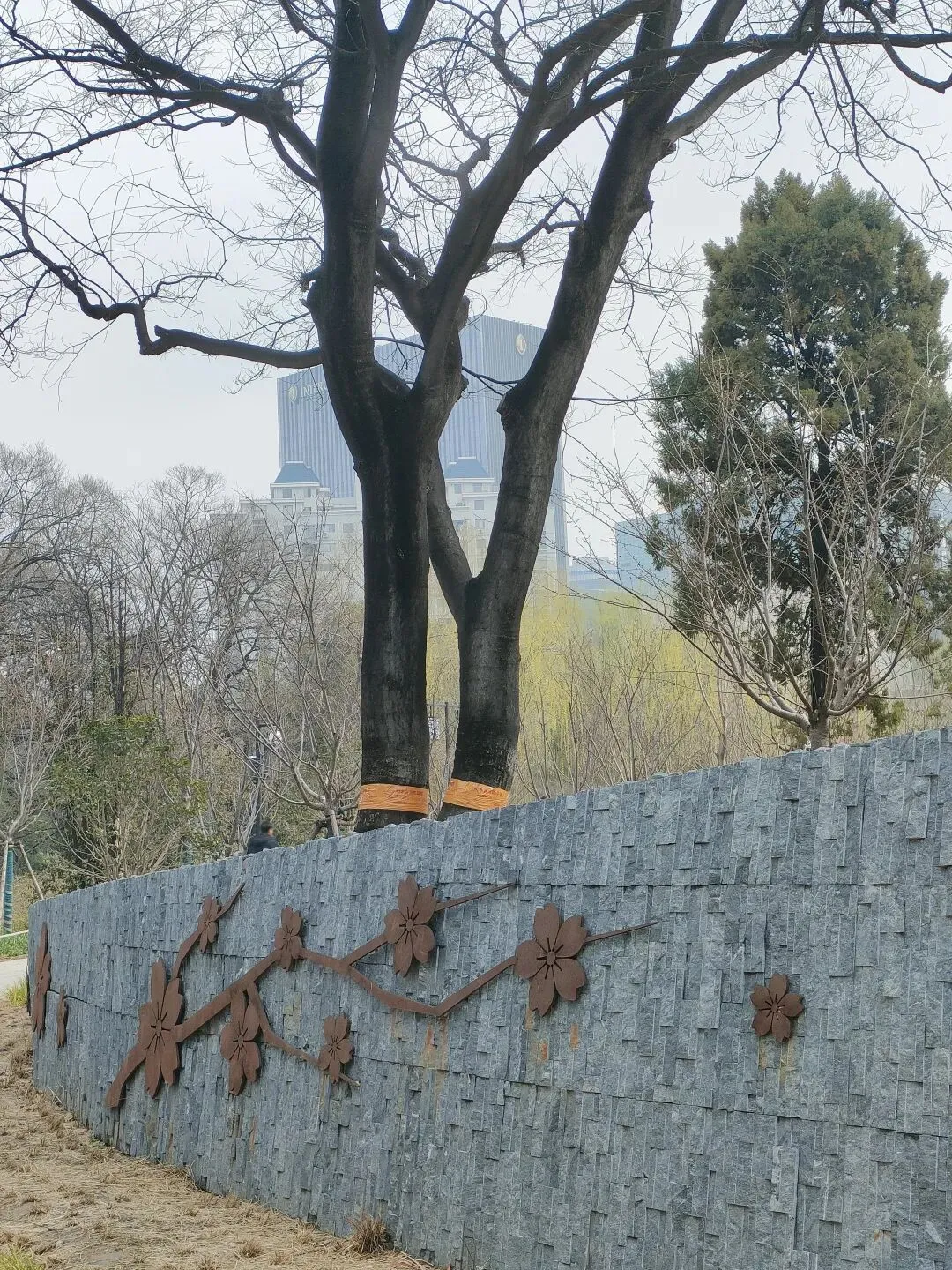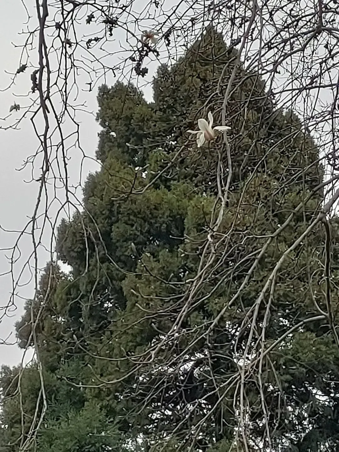 飞寒樱和阳光樱:已经结了花蕾,过几天应该就能开花了。松月樱、关山樱、普贤象樱并称为最常见的晚樱品种,被称作“晚樱三杰”或“晚樱三巨头”,花期要等到三月中旬。松月樱:因其花朵白中透粉,意境宛如“松间明月”而得名。关山樱:俗称“红缨”,是为日本晚樱的一个栽培变种,也是八重樱的代表性品种之一。普贤象樱:雌蕊叶化形成2片绿色叶片状突起,长5-8毫米,弯曲如象牙,是普贤菩萨坐骑的象征,为品种命名来源。望春玉兰:秋园西侧广场,集中种植数十株玉兰树,包括两棵标志性望春玉兰(一棵盛放、一棵花期末)。还有少数紫玉兰也值花期。高大的玉兰树花开得穰穰盈盈,感觉好震撼,拍了不少照片。美人梅:是梅花的观赏品种,粉白带晕的绽放花朵,还有饱满的粉色花苞,花蕊呈金黄色,它通常在早春开放,花型雅致,观赏价值较高。:花单生,多为粉红色,先于叶片开放,花梗极短或几乎无梗。枝条上生有细长的黄色花朵,花瓣顶端带有深色斑点,花型呈长卵形,花苞为绿色,和开放的黄花相映。羽衣甘蓝:
