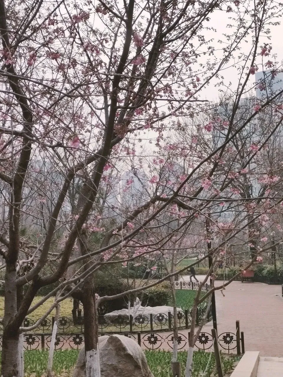 郑州的三月,一场春雪过后,我来到人民公园赏樱。此时早樱品种已次第盛开,园子里还有玉兰、梅花、迎春等花卉;郁金香和许多晚樱品种要等到三月中下旬了,这里公共交通便利,地铁三号线人民公园站可达。朋友们可以规划好时间前来赏春。