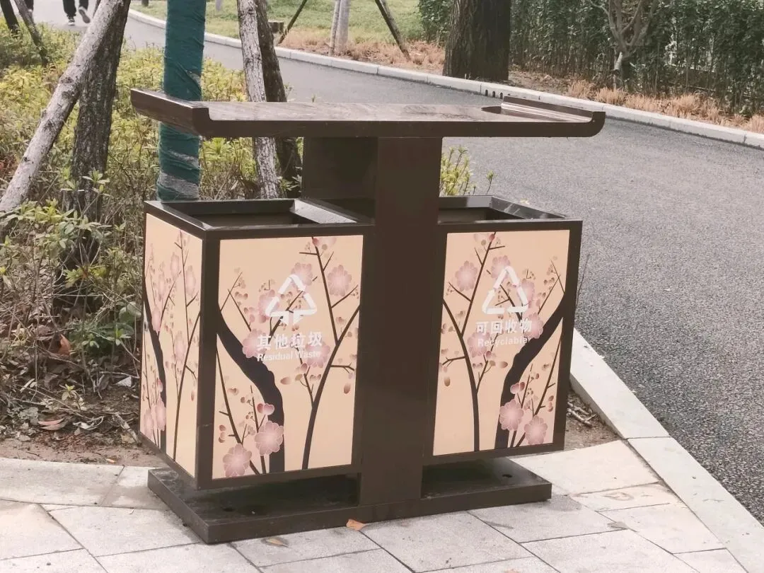 竹园:竹文化与廉政文化长廊。这里山石、宫灯、地砖、垃圾箱都非常有特色。
