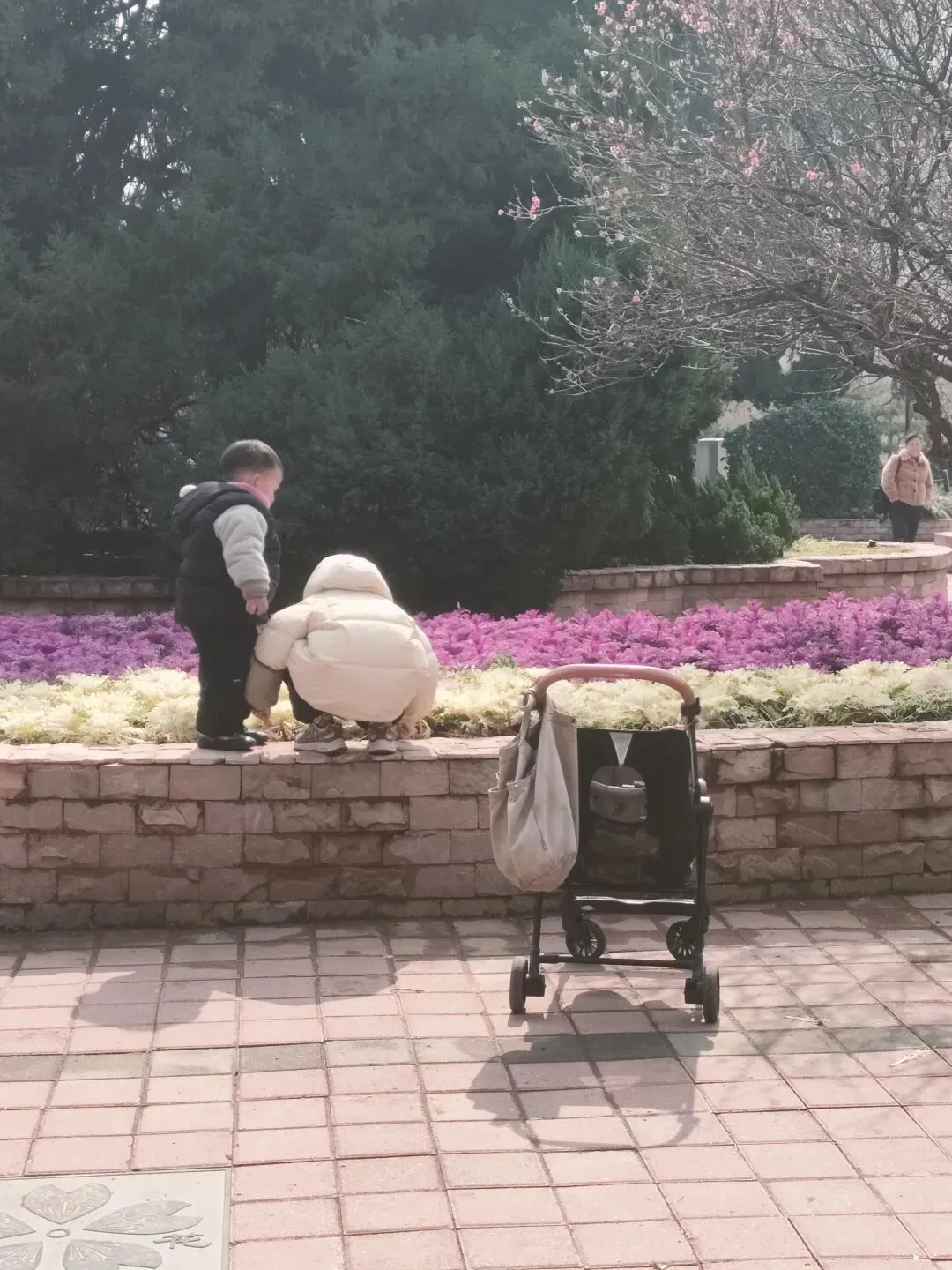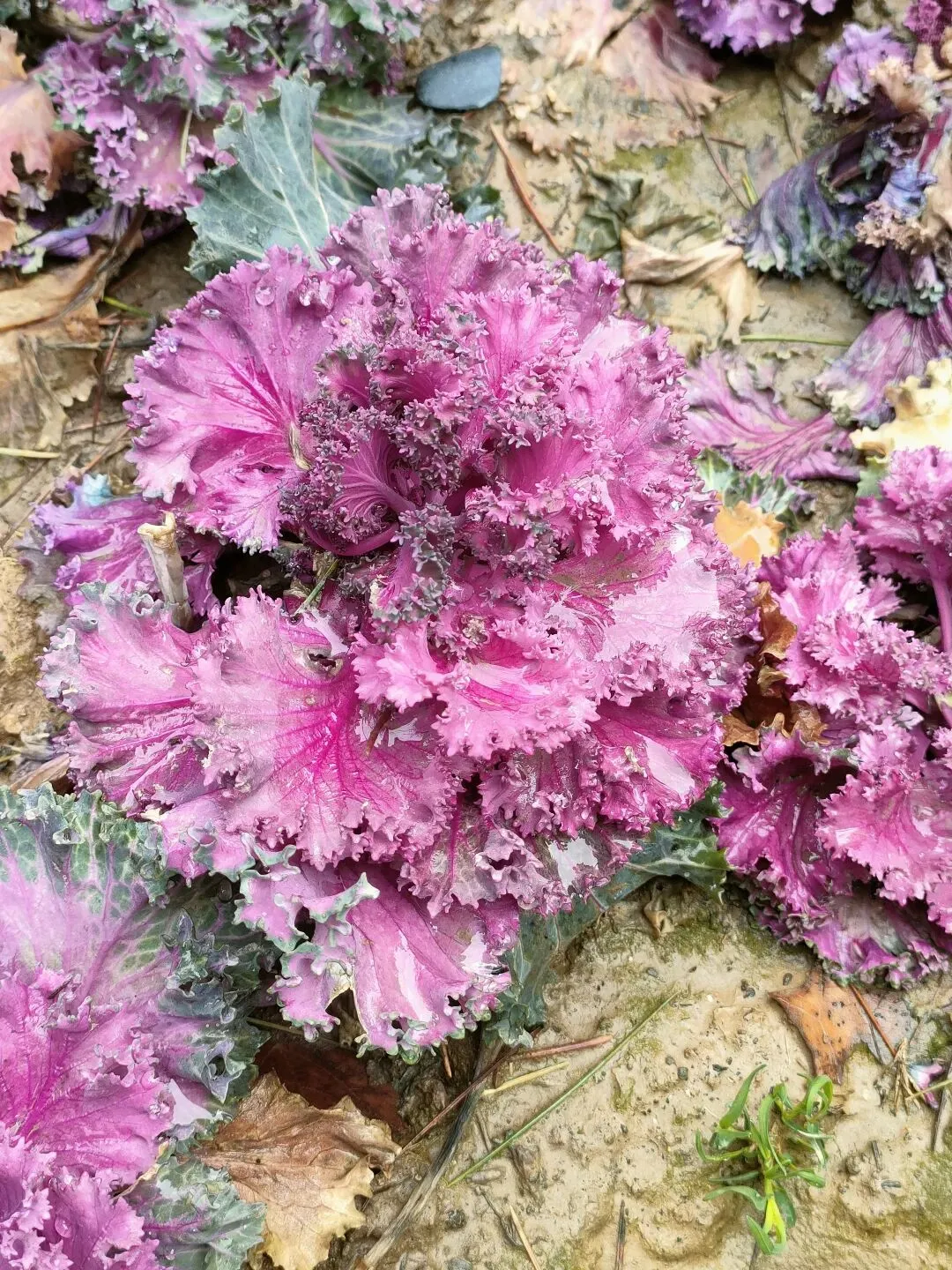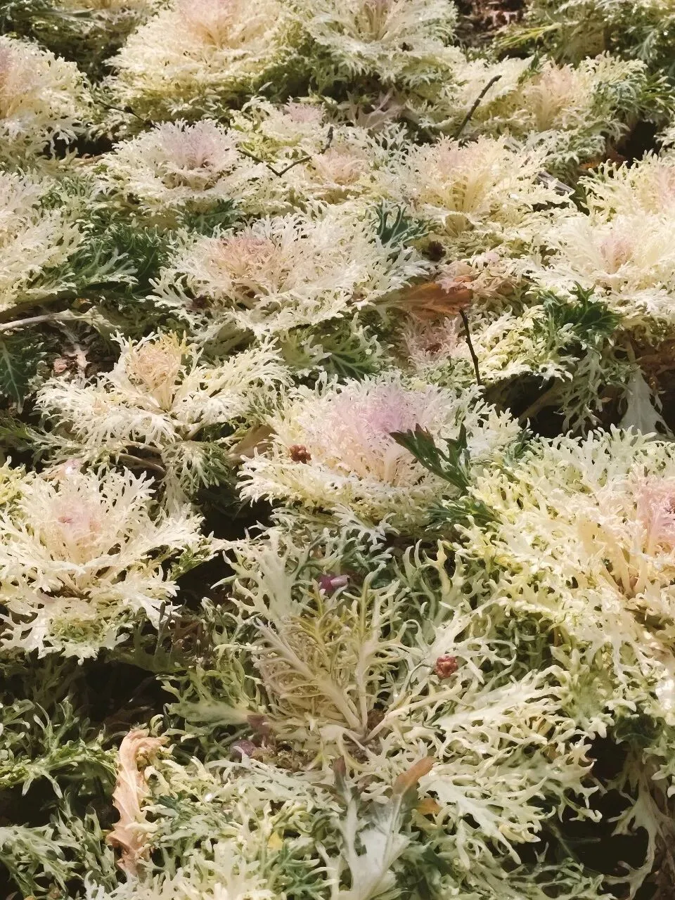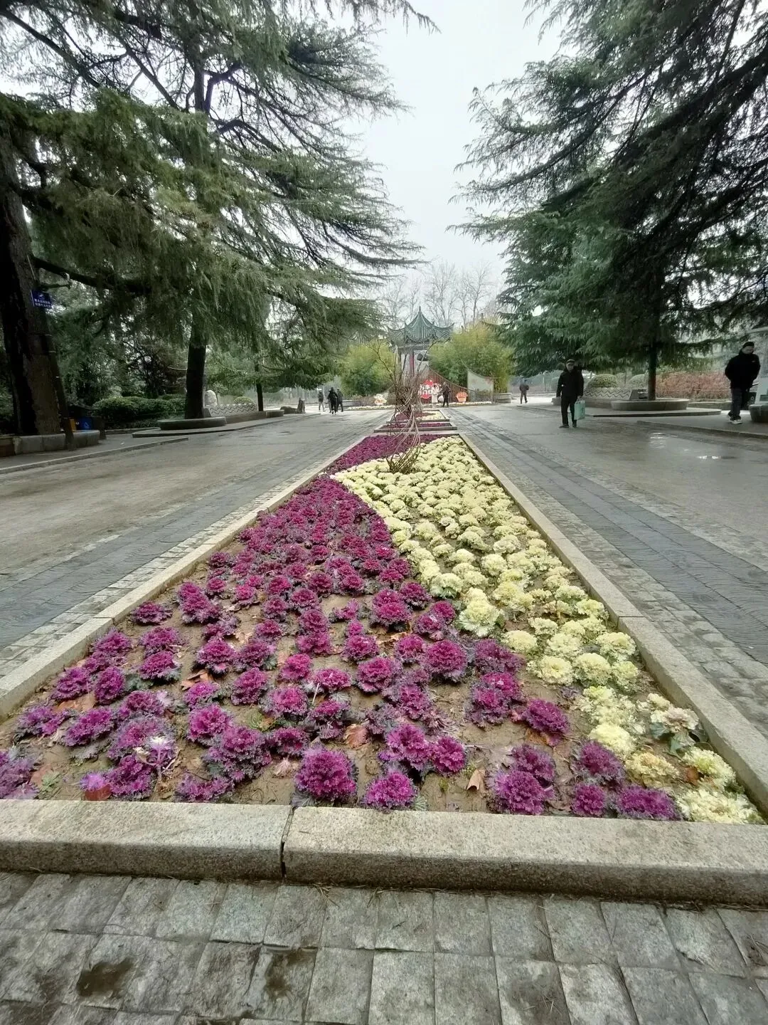 也叫做“叶牡丹”,公园里紫色、黄粉相间两种色彩,叶片呈卷曲的花状形态,煞是好看。