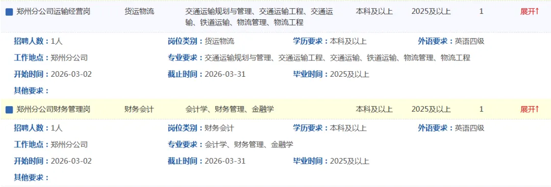 中铁特货物流股份有限公司2026年度招聘毕业生公告中铁特货物流股份有限公司根据企业发展需要,拟招聘普通高等院校毕业生,具体事宜公告如下: