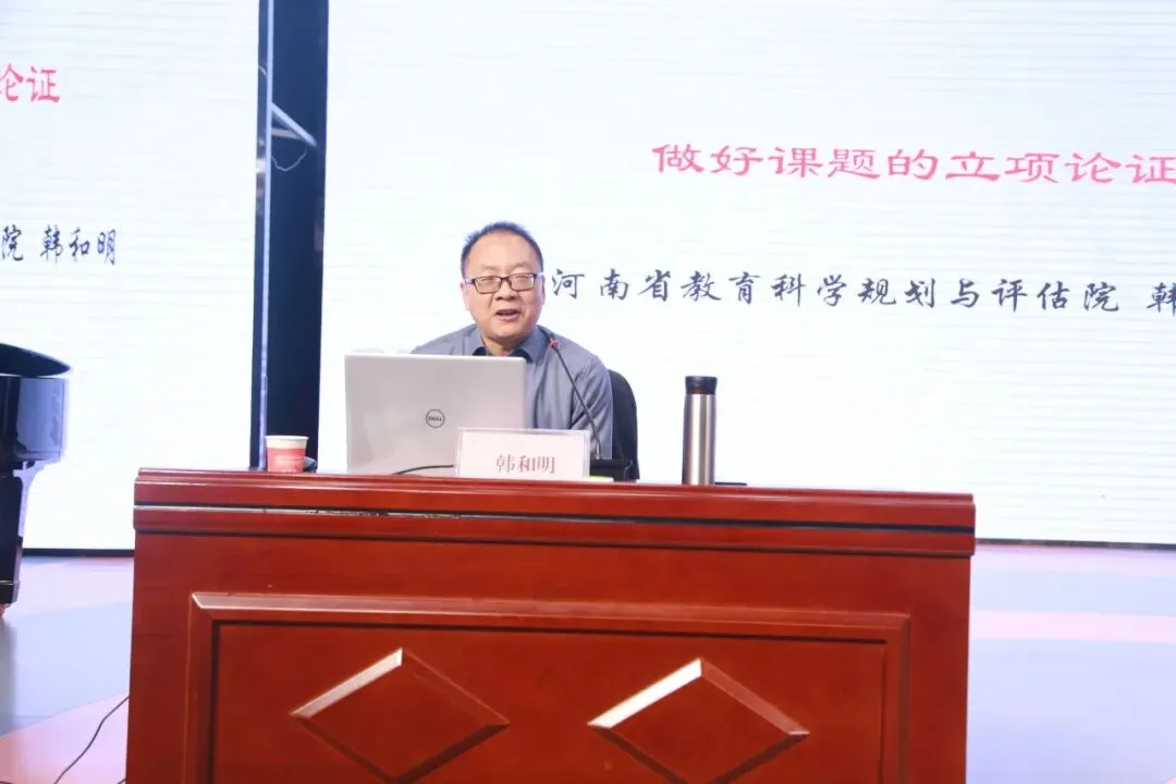 此次培训会分上下午两场。上午,河南省教育科学规划与评估院韩和明教授带来《做好课题的立项论证》专题分享,从“什么是课题”“为什么做课题研究”“怎样做好课题研究”三个方面,系统阐述课题立项论证要点,结合精彩案例与实操片段,既有理论提升,又有个案剖析,让老师们直观掌握课题研究方法。