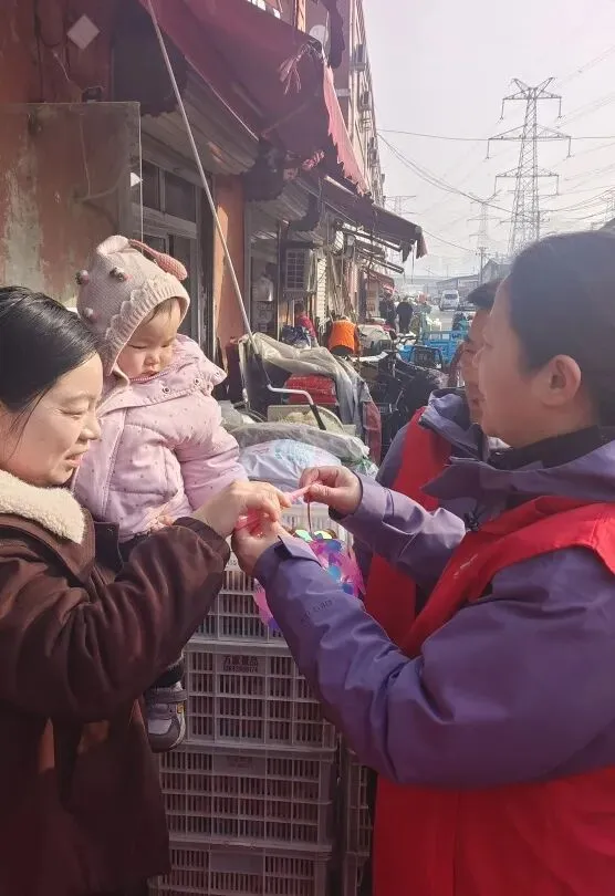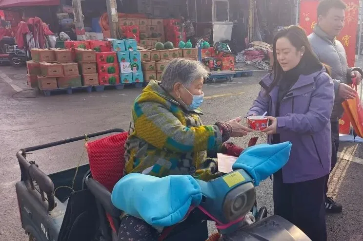 与此同时,党员志愿者们分组走进市场内高龄老人和儿童家庭,送上汤圆、小灯笼和暖心祝福。大家与老人促膝谈心,了解生活需求;与孩童亲切互动,传递社会关怀,让传统节日更有温度。另外一组志愿者则深入困难商户摊位,协助整理货架、清扫卫生、规整货物,力所能及减轻经营负担,以实际行动践行志愿服务精神。