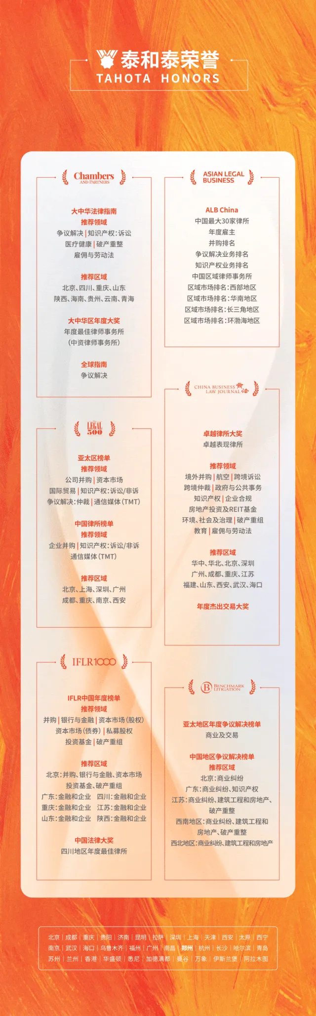 泰和泰荣誉丨我所荣获2026年度钱伯斯大中华区法律大奖多项提名