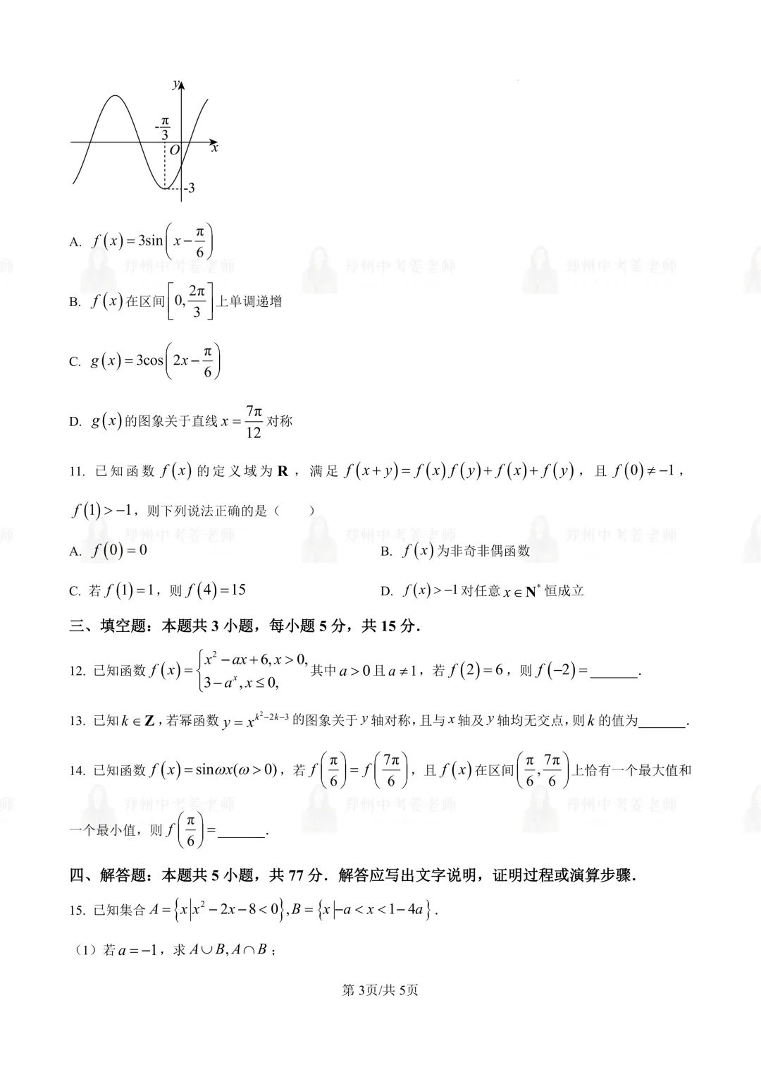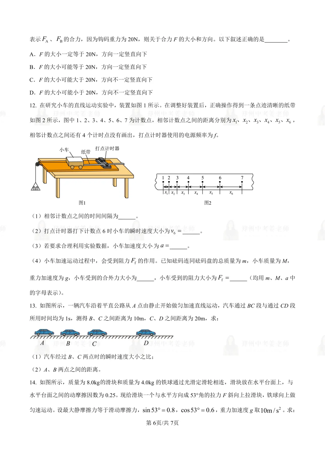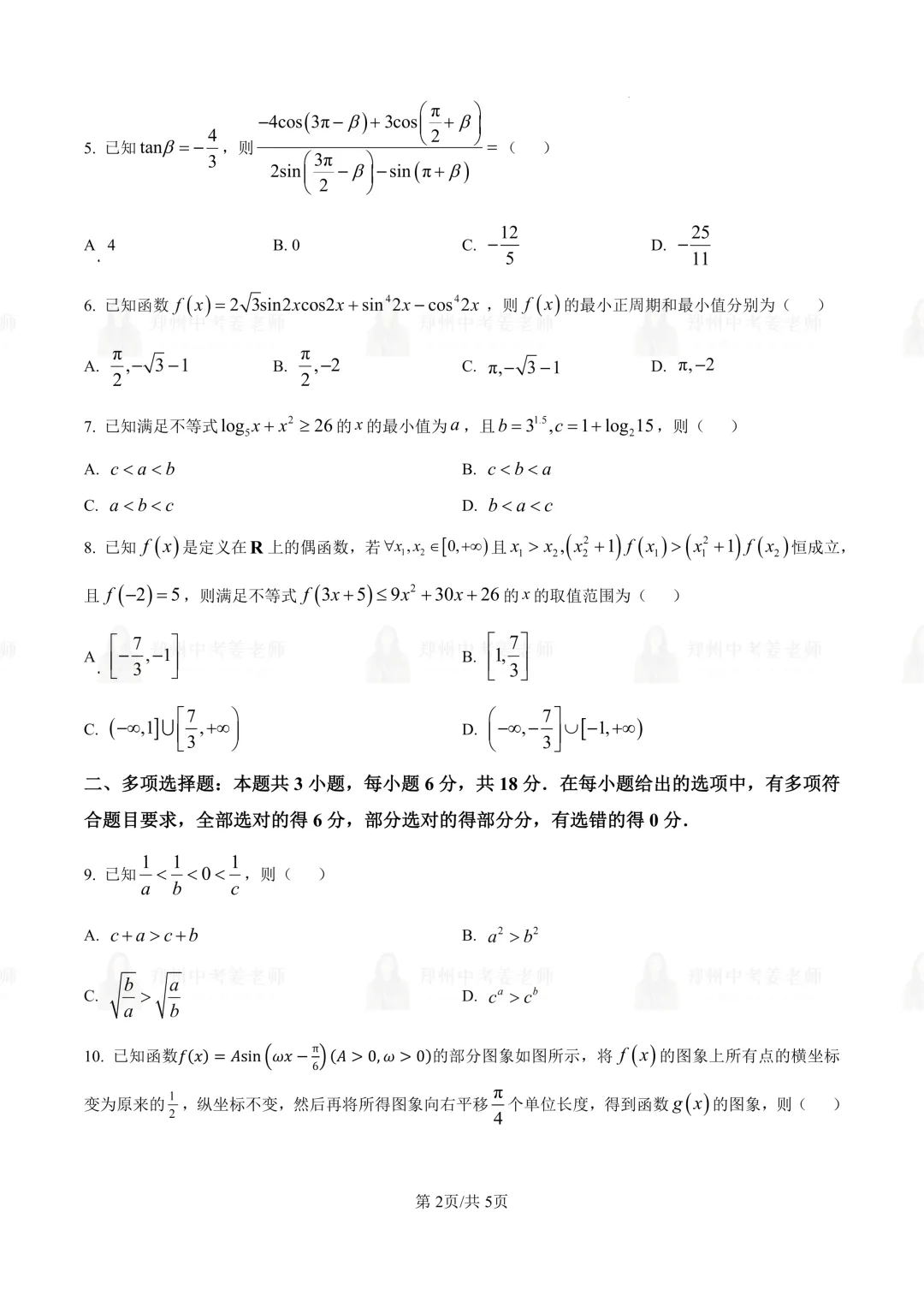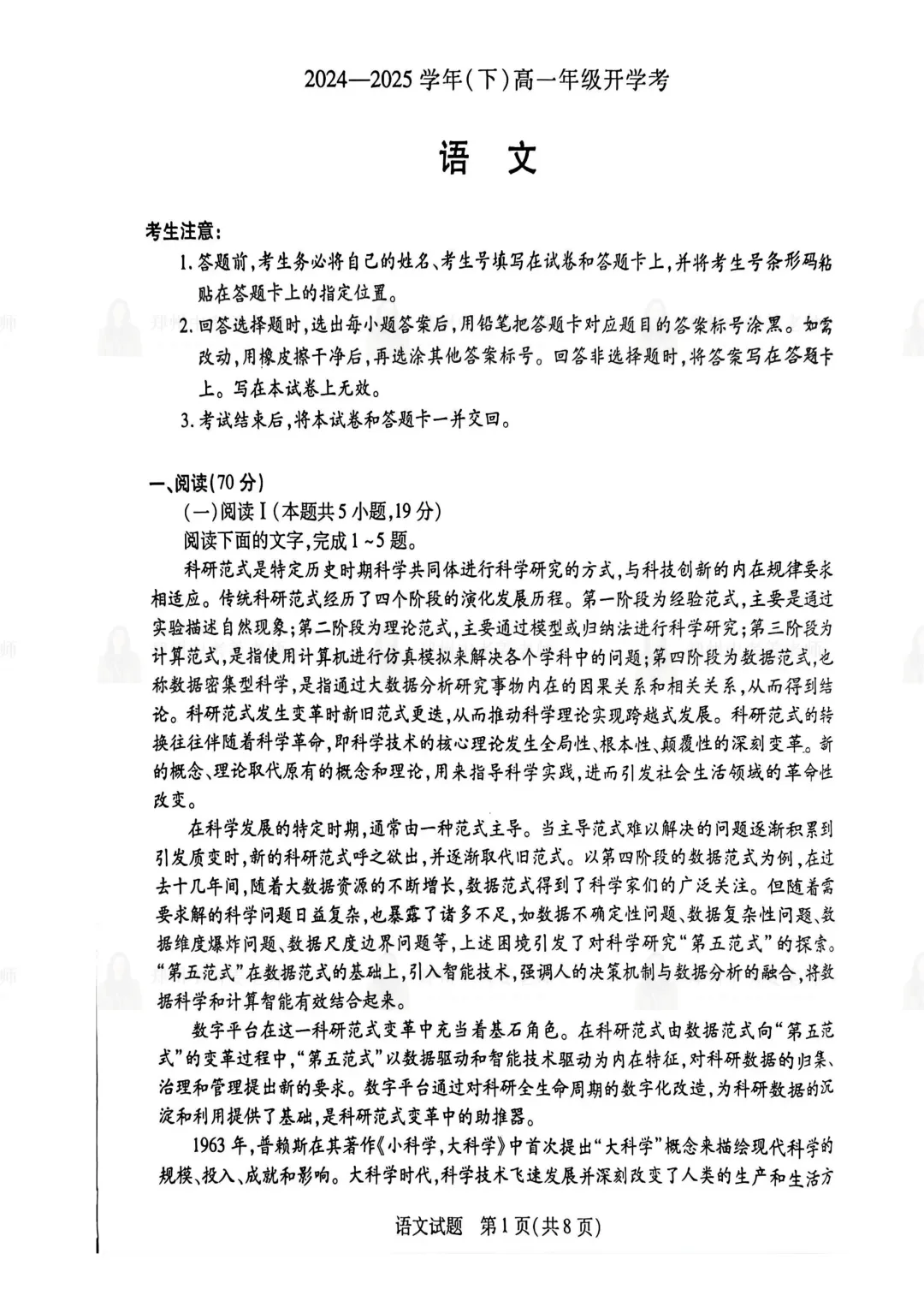 >【9科全】郑州部分高中2024-2025学年高一下开学考真题及答案