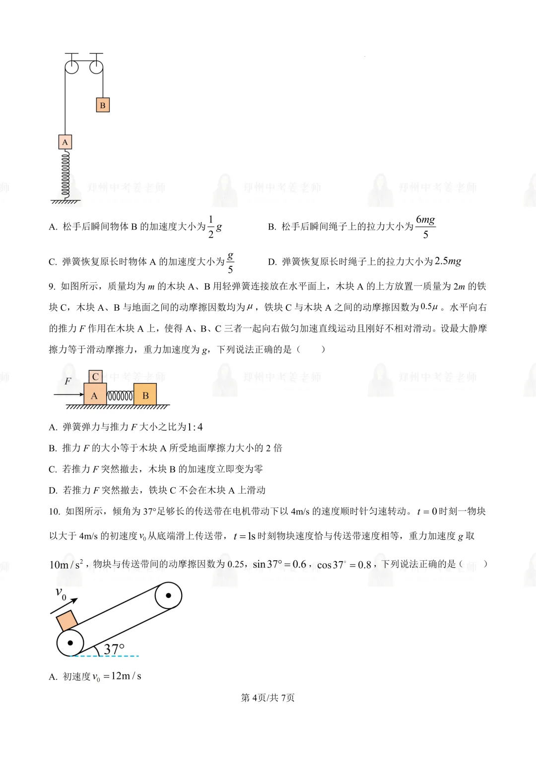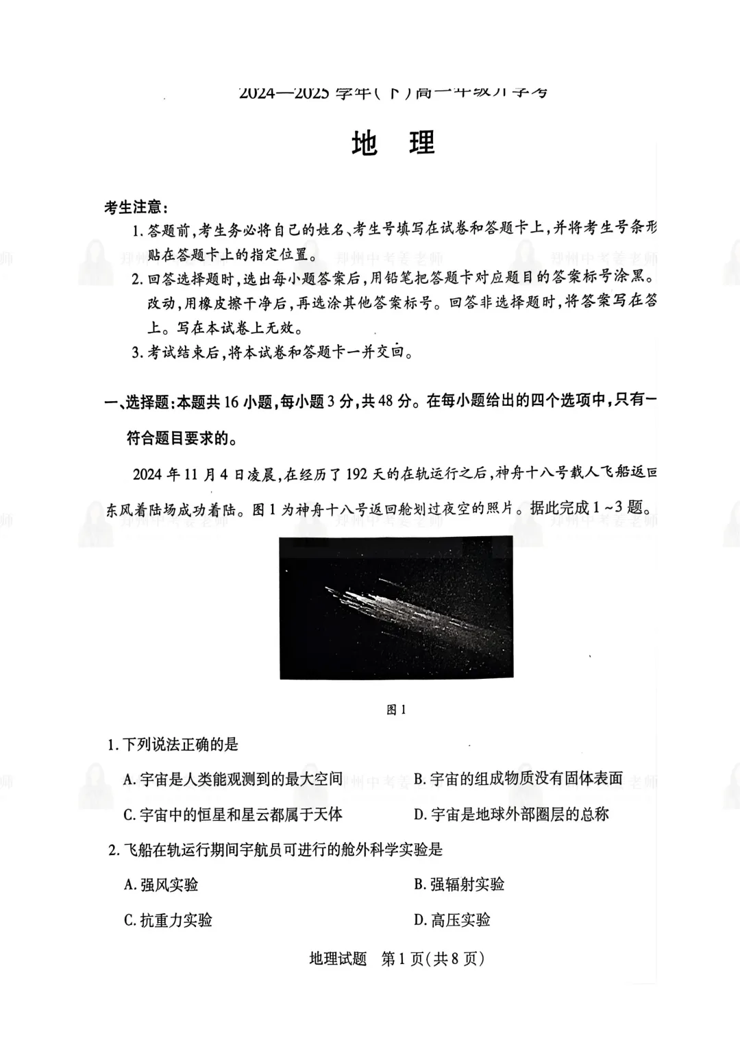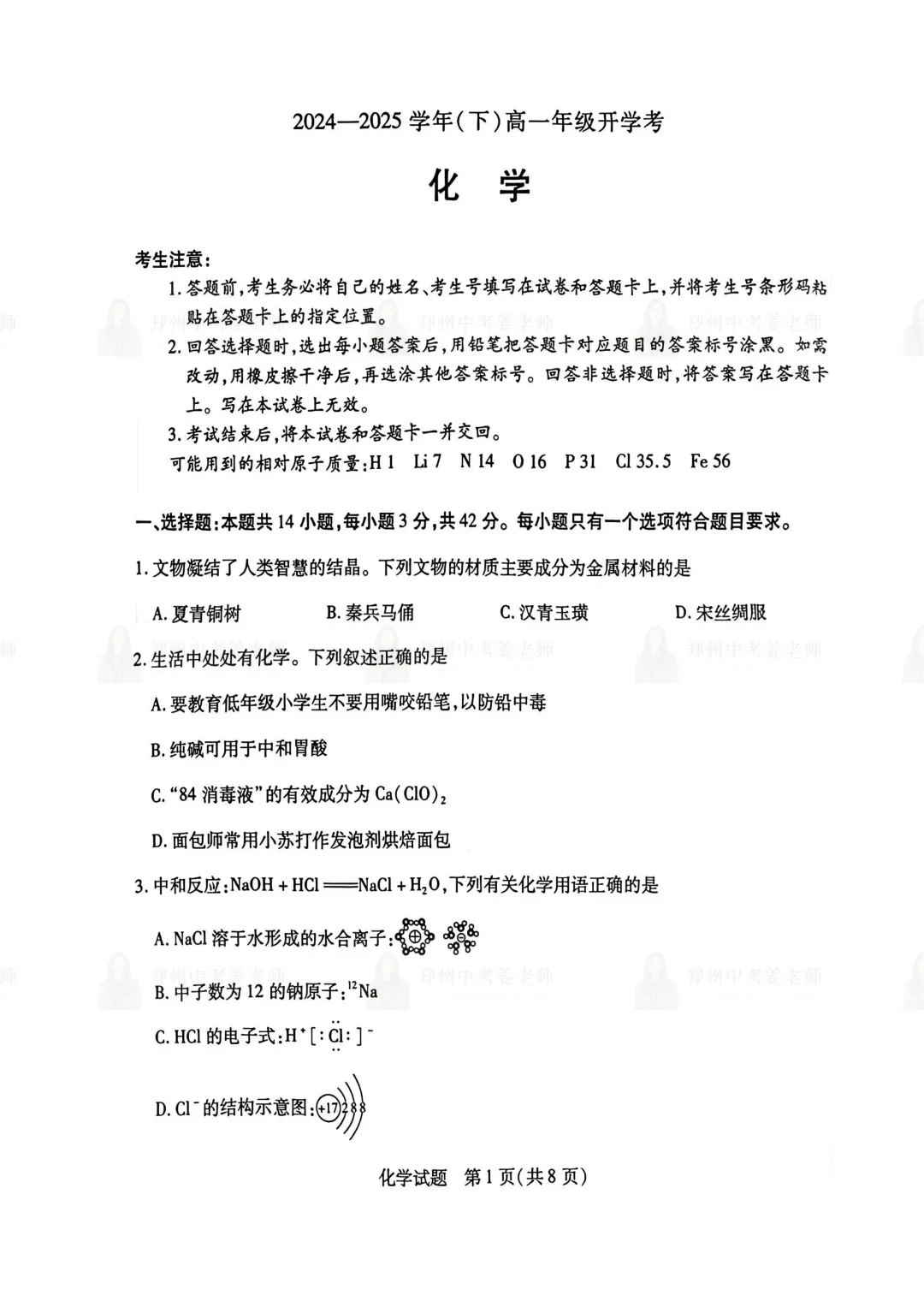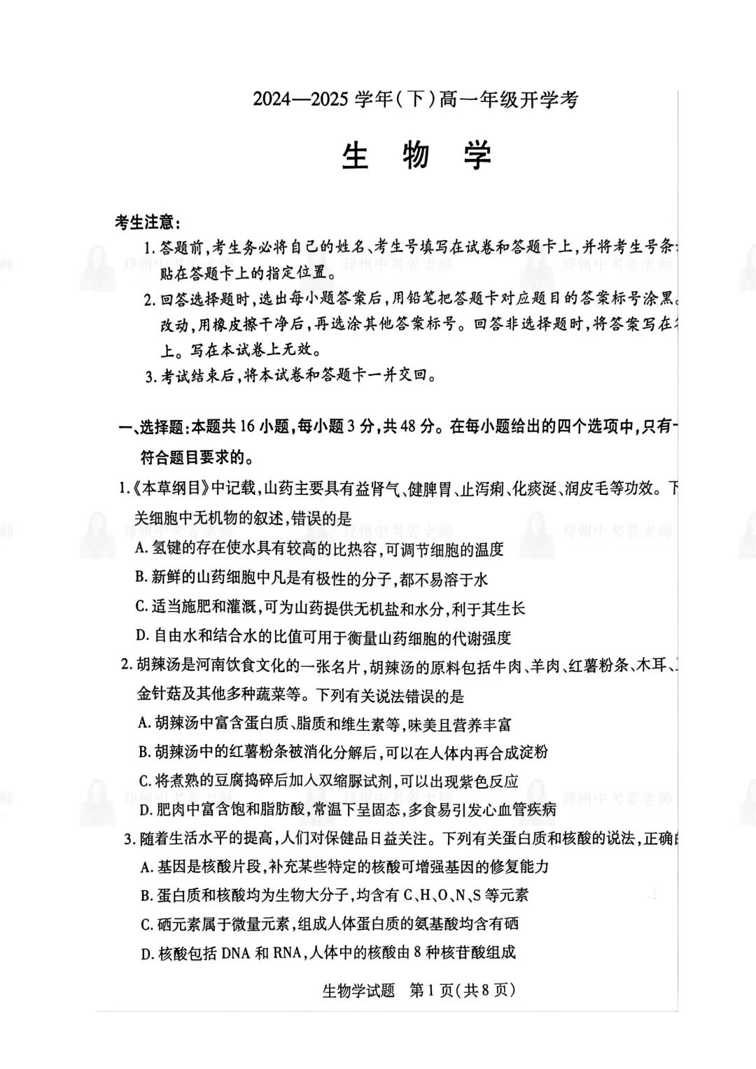【9科全】郑州部分高中2024-2025学年高一下开学考真题及答案