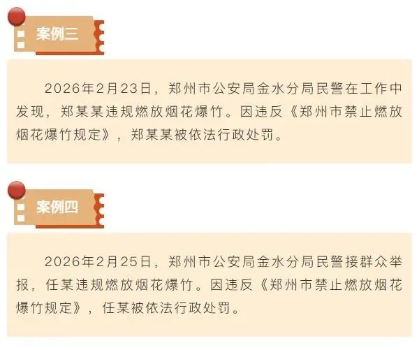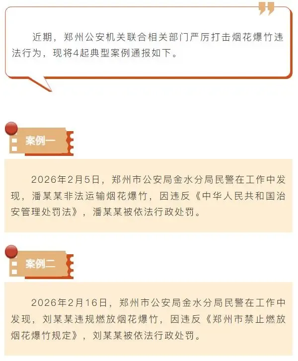 >郑州金水警方通报4起打击烟花爆竹案例