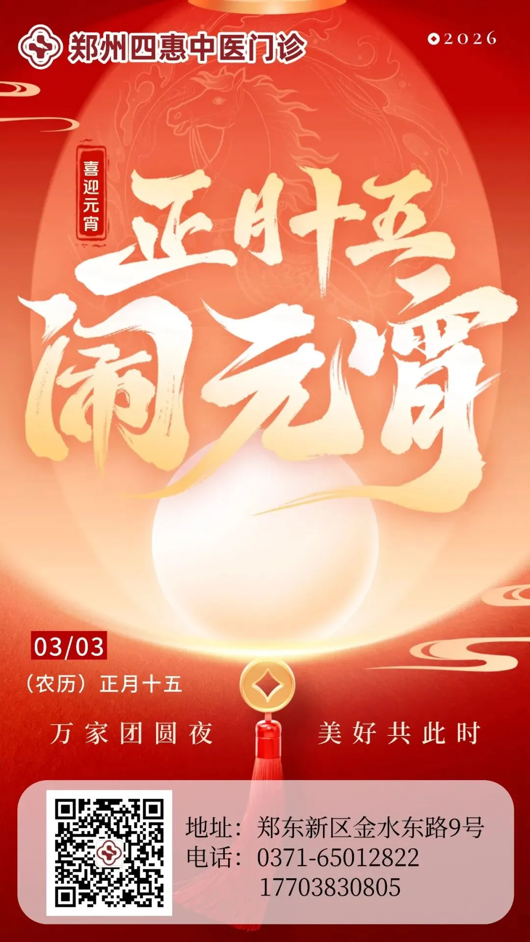 >郑州四惠中医门诊祝您元宵节快乐,健康喜乐常相伴!