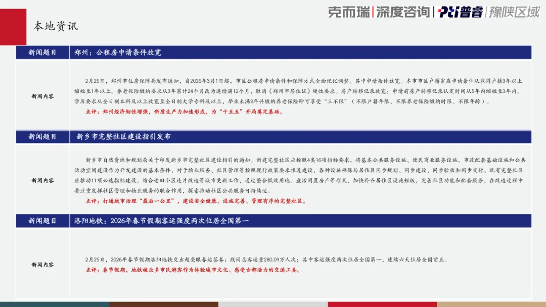 地方层面:公租房政策精准调优。郑州自3月1日起执行新的公租房申请政策,在户籍、从业年限、学历等方面均提高了门槛。