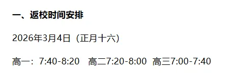 3月5日(正月十七,星期四)上午,8:30—10:00三个年级错时返校。