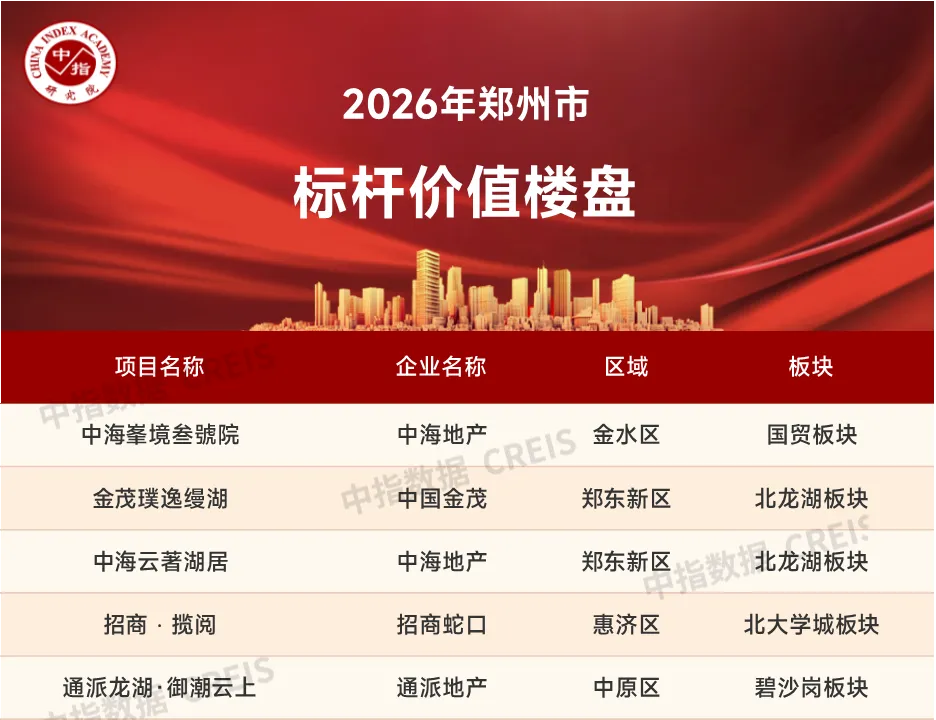 2026年1-2月,郑州商品住宅销售金额排行榜TOP10项目合计销售金额为17.80 亿元,其中TOP10的销售金额门槛值为0.89亿元。金茂璞逸缦湖以5.58亿元的销售额位列销售金额排行榜首位,通派龙湖·御潮云上以2.21亿元的销售额位列第二,中原华曦府以2.01亿元位列第三。销售面积方面,TOP10项目合计销售面积为8.73万平米,TOP10项目销售面积门槛值为0.42万平米。通派龙湖·御潮云上以1.77万平米的销售面积位列排行榜首位,金茂璞逸缦湖以1.37万平米的销售面积位列第二,中原华曦府以1.26万平米位列第三。特别声明:标杆价值楼盘是在中房指数系统理论体系和架构的基础上,从百城新建住宅价格指数样本项目中选取在所属城市有较强知名度和广泛影响力的典型样本项目,以“典型性”“代表性”为基本原则,从销售表现、产品创新等方面对样本楼盘进行研究,肯定项目的典范代表地位。本报告仅供参考,不对使用报告及其内容所引发的任何直接或间接损失承担责任。金水区 ▍中海峯境叁號院