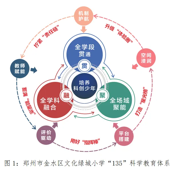 河南省郑州市金水区文化绿城小学以培养目标为出发点,以联动路径为突破点,以资源保障为支撑点,逐步构建“135”科学教育体系。通过“全学段贯通、全学科融合、全场域聚能”三维路径联动,破解传统科学教育碎片化、程式化、孤立化难题。同时依托“机制护航、教师赋能、评价驱动、平台搭建、空间浸润”五维支撑保障,共同铺设科学教育高质量发展路线图,学校科技特色品牌逐步彰显,近年来,荣获省级以上综合性荣誉7项,师生荣获各级科技赛事奖励100余项。