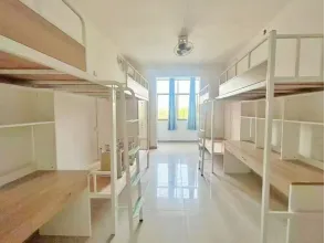 共2栋楼,1号楼共4层,每层宿舍27间,共108间,2号楼共4层,每层18间,共72间,宿舍楼共计180间,按照6人间住宿标准可容纳1080人住宿。