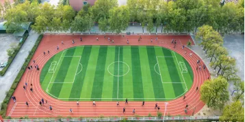 操场占地约3000平方,现有6个篮球场,4-6个羽毛球场。