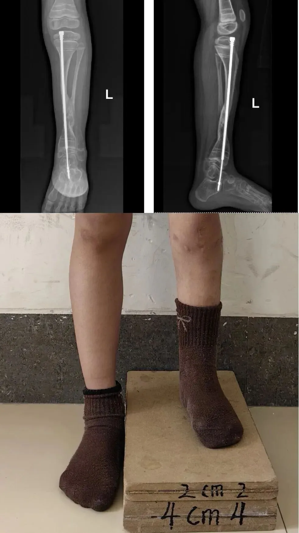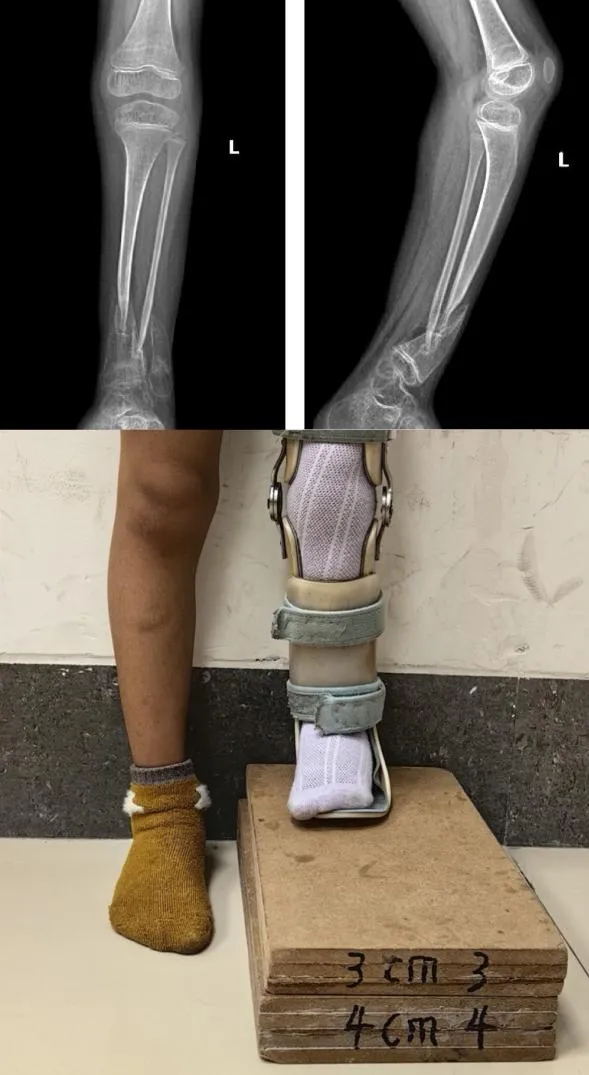 经过几个月的康复训练,复查显示:小雨的胫骨假关节已经实现骨性愈合,下肢力线完美,可以和正常小朋友一样,奔跑、玩耍了!