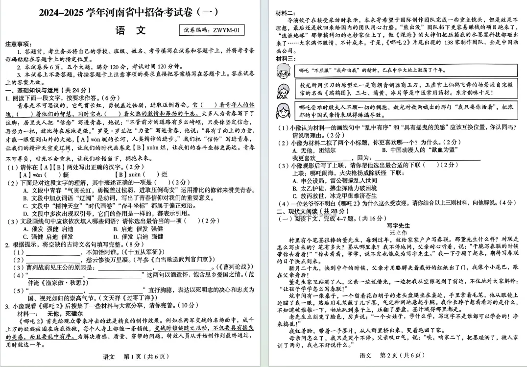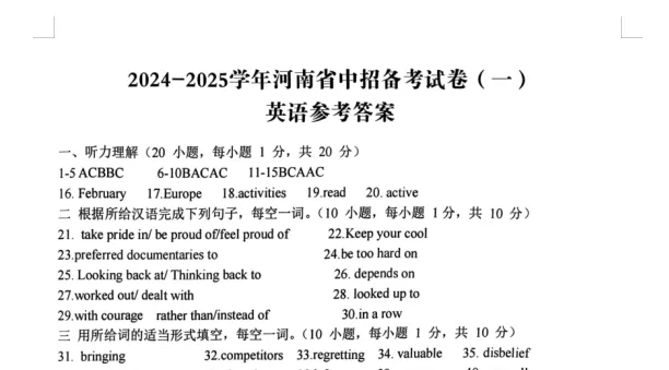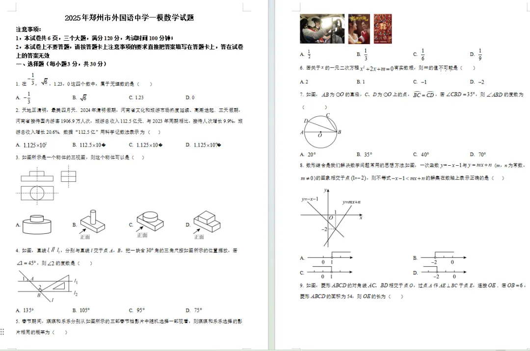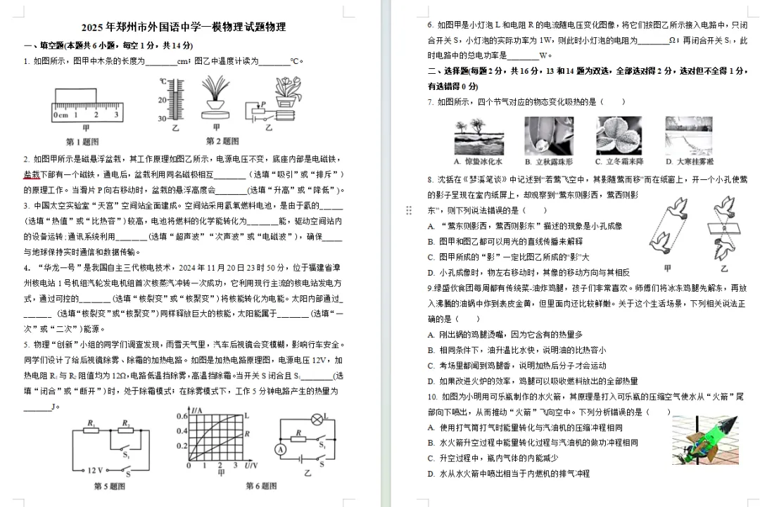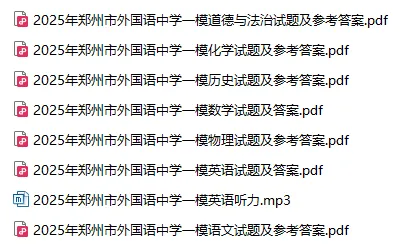 郑州外国语中学九年级一模真题试卷!七科全,点击下载