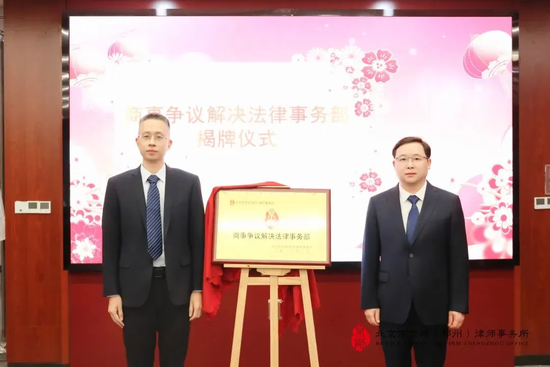 随后,京师郑州律所执行主任张春兴为商事争议解决法律事务部进行揭牌。