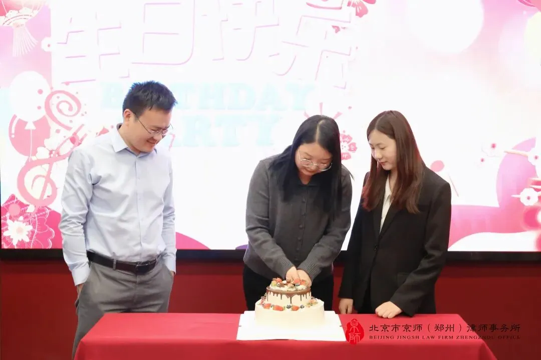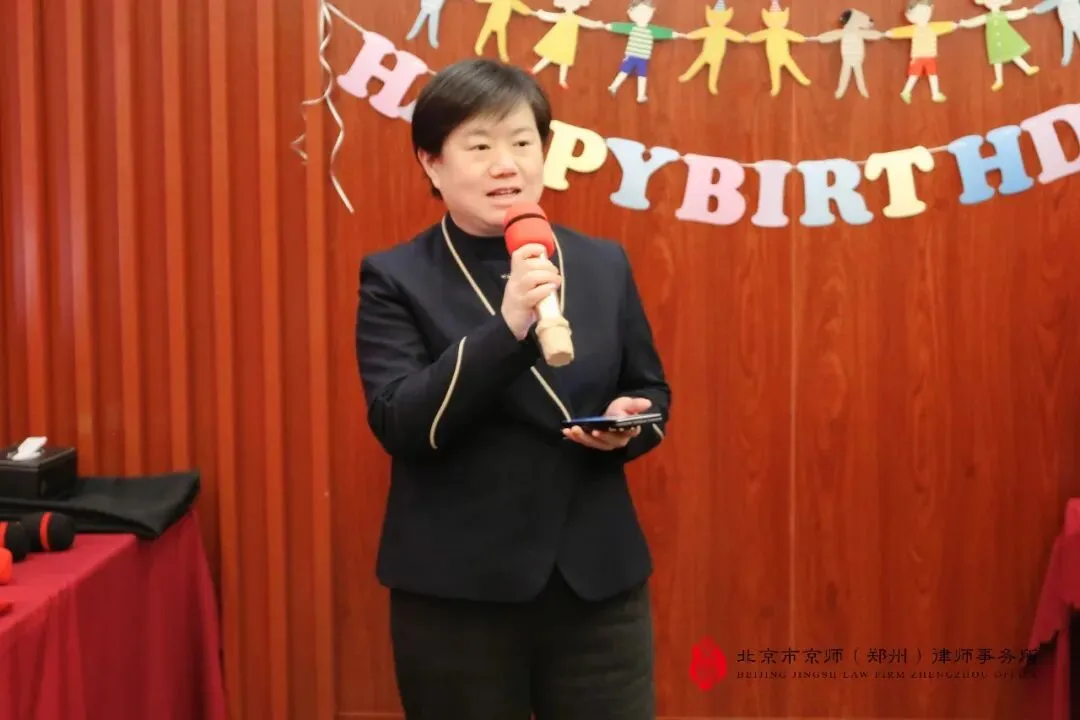 京师郑州律所文化品牌部工作委员会主任刘兆庆律师代表律所向新加入的伙伴们致以最诚挚的欢迎,并向现场寿星们送上最暖心的生日祝福。