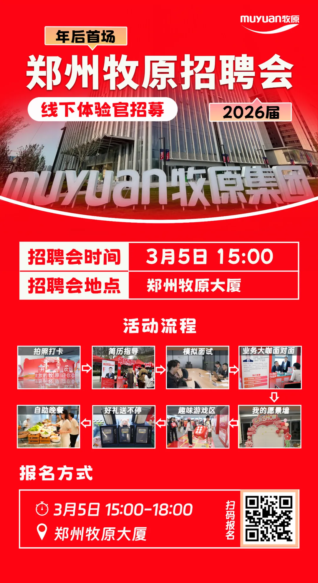 郑州牧原招聘会|年后首场线下体验官招募🚀