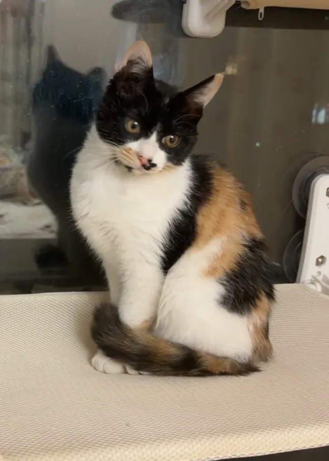 宠物信息:四五个月的小母猫,疫苗已齐全,疫苗本可给。寻求一个好人家,大雪天之前救助的小宝贝,原住民天天打架,没法继续维持生活,只能求一个疼爱猫咪的主人,无偿领养,希望找个人爱的家庭