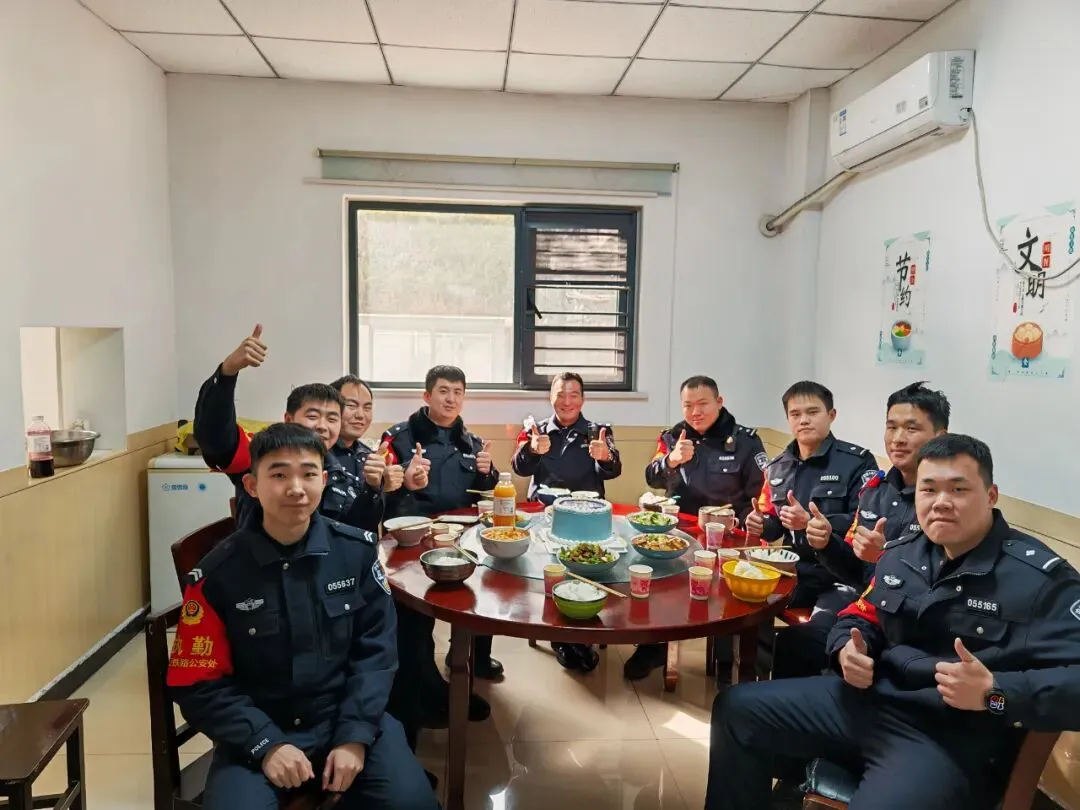 故事:执勤间隙,民警们围坐聚餐,欢声笑语里,是并肩作战的战友情,也是坚守岗位的团圆年。