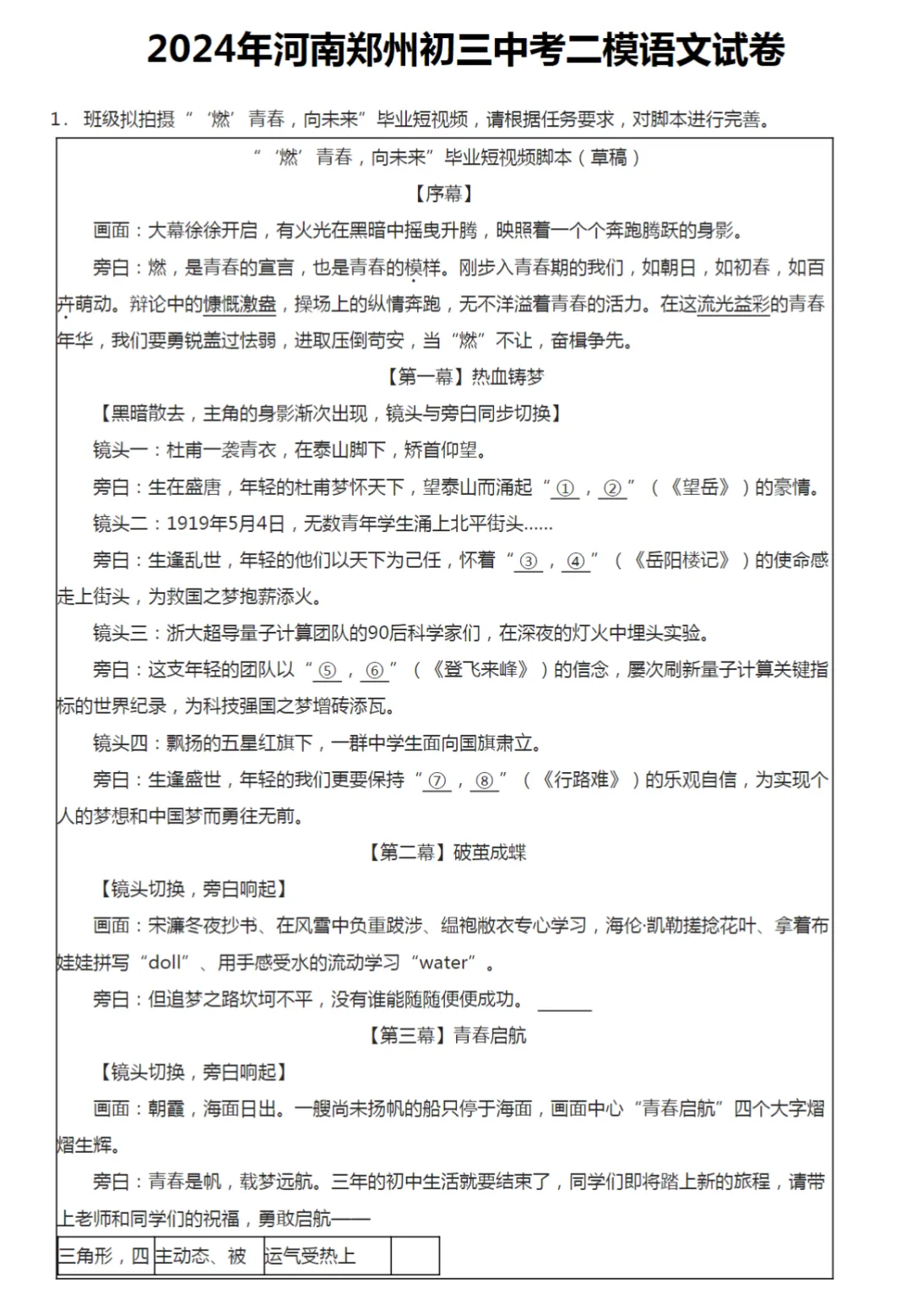 2020-2024学年河南郑州中考二模语文真题及答案解析