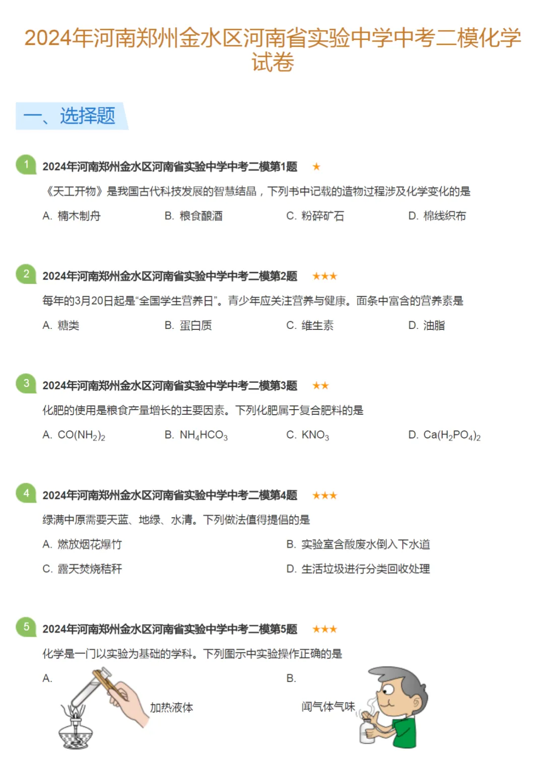 2018-2024学年河南郑州中考二模化学真题及答案解析