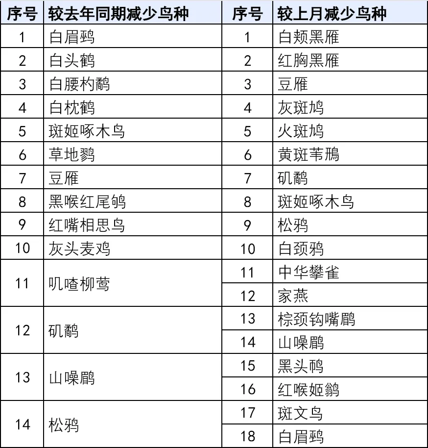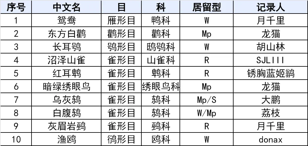 2026年2月1日-2月28日,郑州地区共上传报告:394份,记录鸟种:171种,目:17,科:44(分类依据《中国鸟类分类与分布名录(第四版)》),较去年同期146种(百人百鸟团2025年2月郑州野外鸟类观察月报)增加了25种;较上月174种(百人百鸟团2026年1月郑州野外鸟类观察月报)减少了3种。当前郑州市鸟类总记录421种(注:数据来源中国观鸟记录中心)。