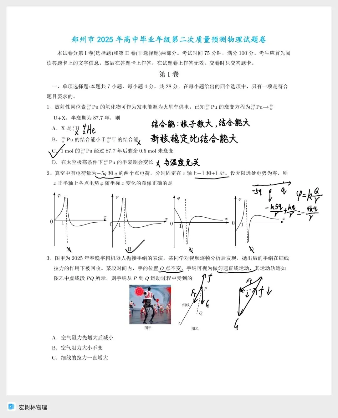 再刷一遍去年郑州市2025届高三二测物理试题,整体大题中上等难度,完美贴合高考命题方向,全考点覆盖,含金量拉满! ✅ 全覆盖:力学、电磁学、热学、光学、近代物理✅ 重难点:动量冲量、磁场复合场均考到✅ 梯度好:基础稳分、中档拉分、压轴有区分度✅ 适配新高考:模型经典、情景真实、重思维轻套路 这份卷子非常适合:▪ 高三查漏补缺、限时训练▪ 对标高考难度、规范答题步骤▪ 重点突破动量、磁场两大高频难点 二测是高考前最关键的一次全真模拟,把这套题吃透,思路理顺,物理再提一个档次!