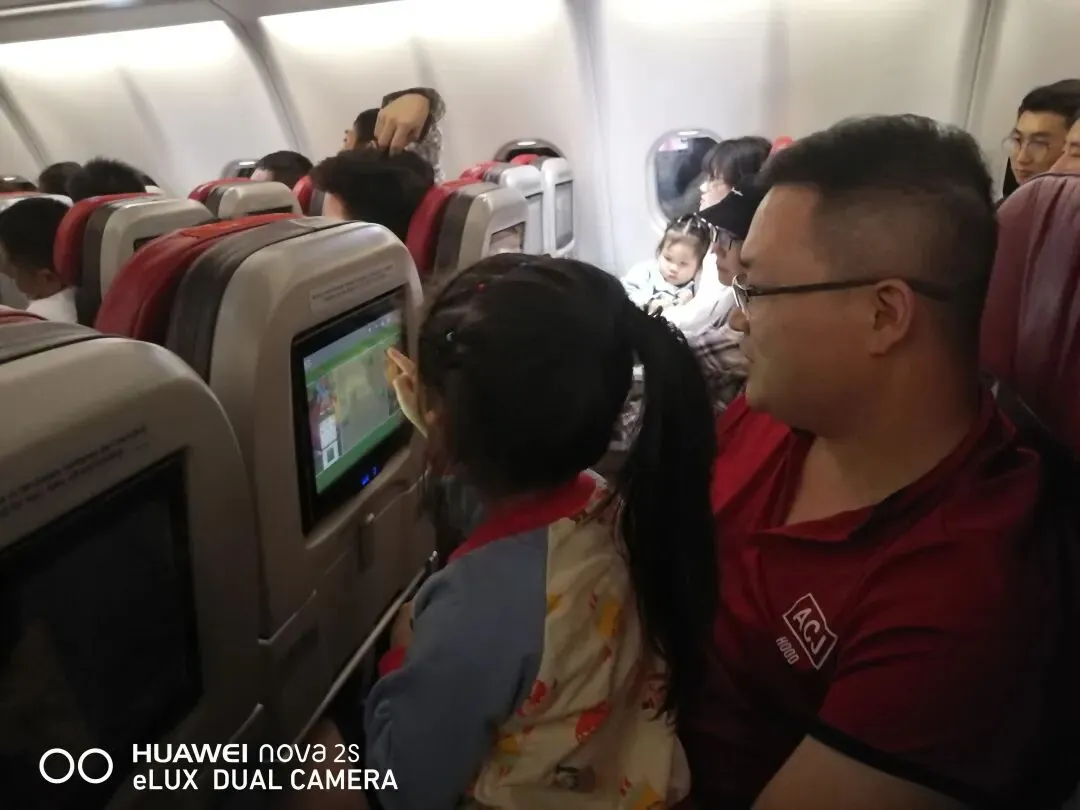 2019年我们去泰国的飞机上,我老公抱着我女儿