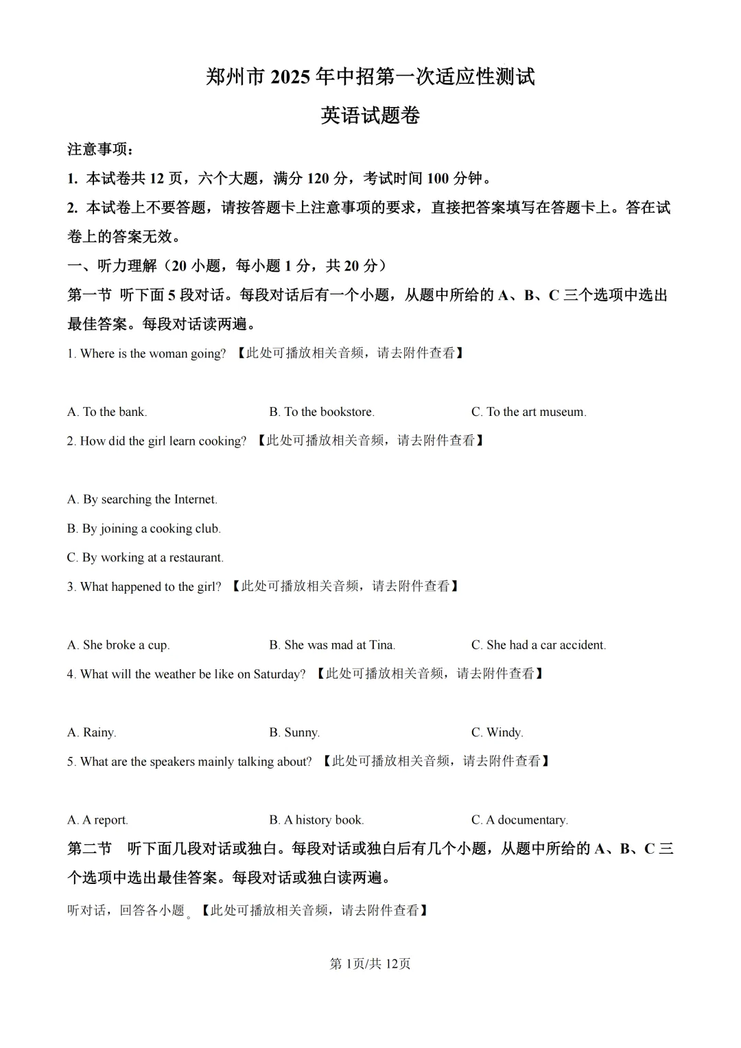 本试卷紧扣九年级课标,全面考察听力理解、阅读理解、完形填空、语篇填空、情景对话与书面表达等综合能力。基础题如短对话听力、词汇语法选择是主要得分点;难点在于需要高阶思维与综合探究的题目,如听力表格补全、多篇阅读理解中的信息整合与逻辑推理、完形填空的语境深度理解、语篇填空的篇章逻辑连贯,以及书面表达中基于图表信息提出具体倡议的实践性任务,对学生的知识整合、批判性思维和实际应用能力提出了较高要求,体现了良好的选拔功能。<点击图片查看全卷>