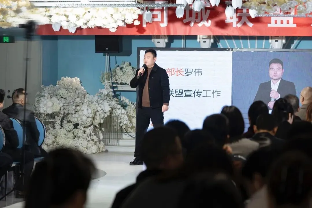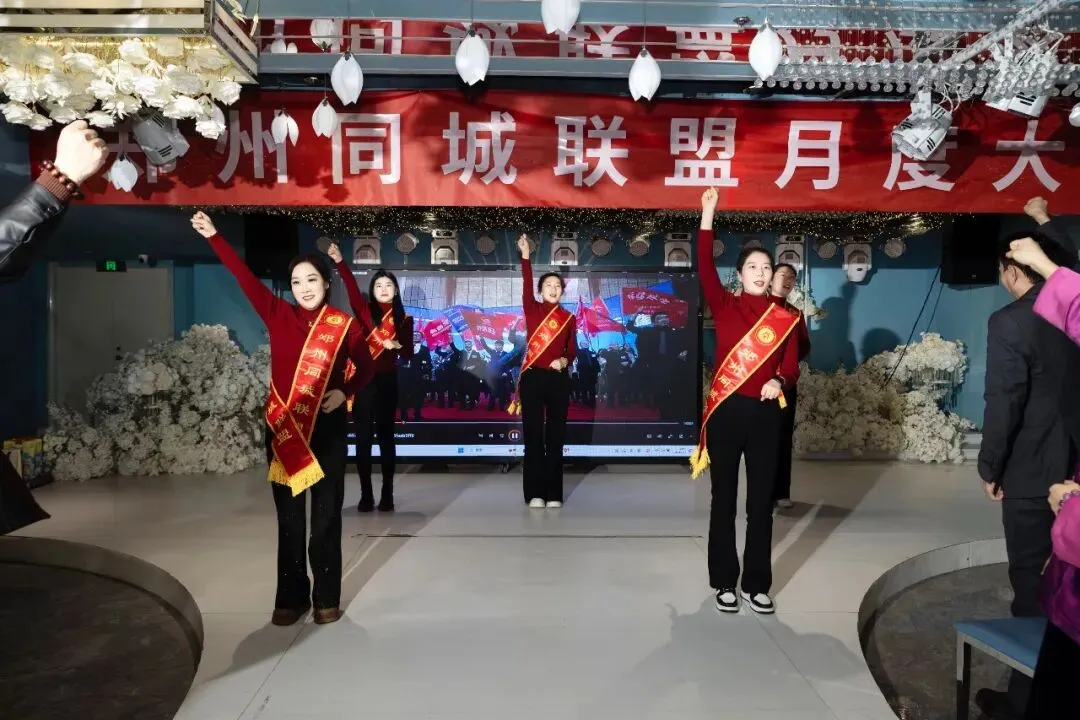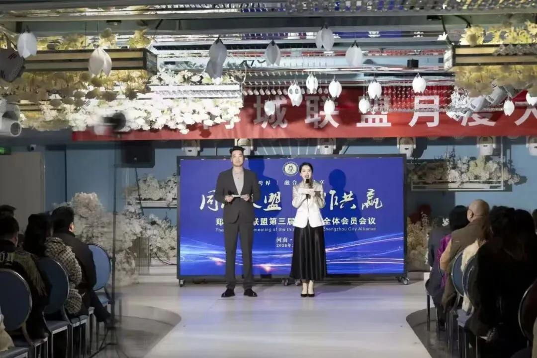 本次大会由福临珠宝崔婷婷、雅兰床垫杨 sir联袂主持,现场秩序井然、氛围热烈,彰显出郑州同城联盟团结向上、实干争先的精神风貌。