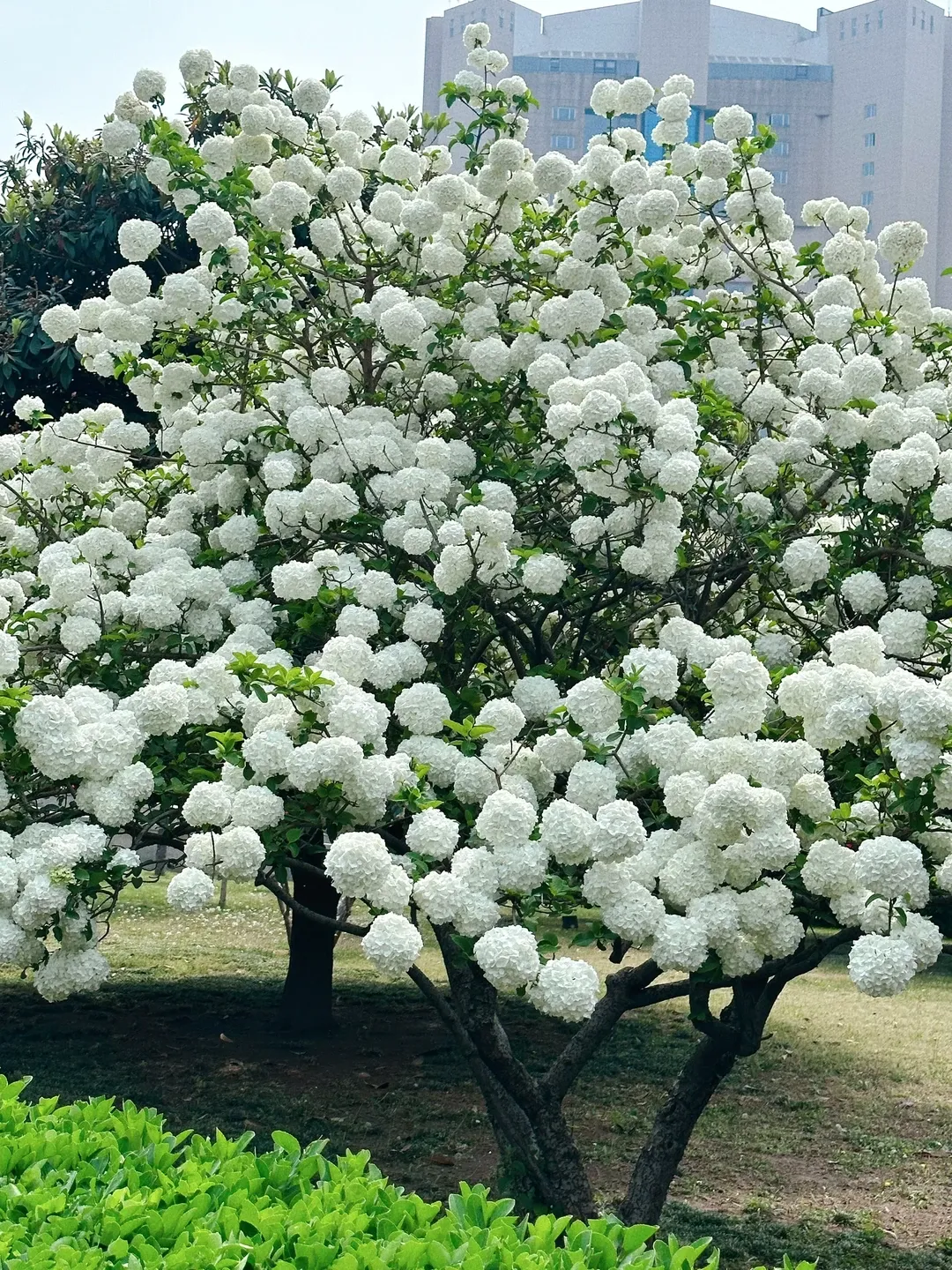藏着绝美的木绣球,洁白饱满,搭配博物院的古朴建筑,雅致又出片;绿城广场的绣球花在5月下旬绽放,可错峰打卡。