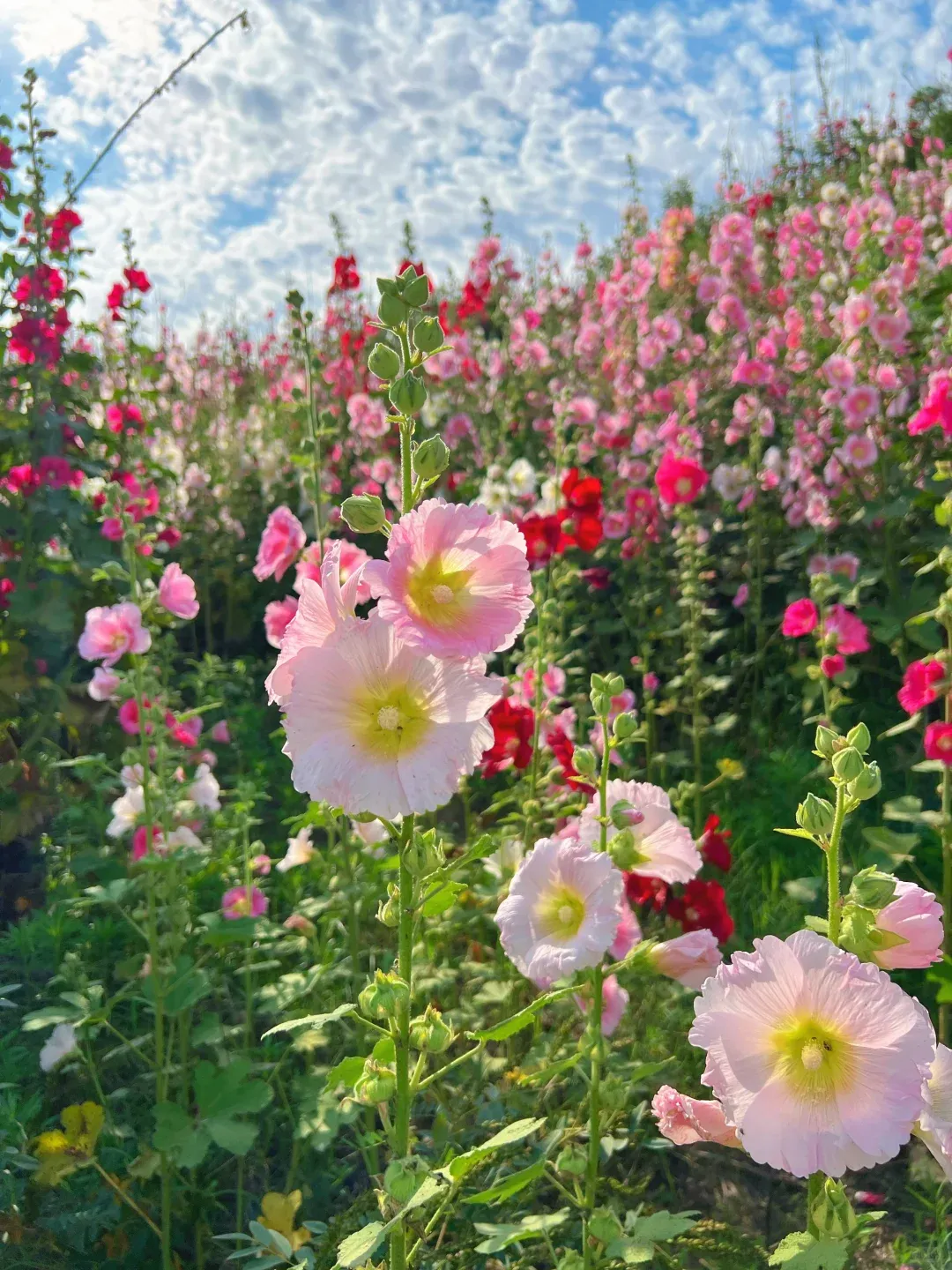 漫山遍野的蜀葵花美到出圈,色彩艳丽、花型硕大,一片绚烂,拍照巨出片,错过等一年。