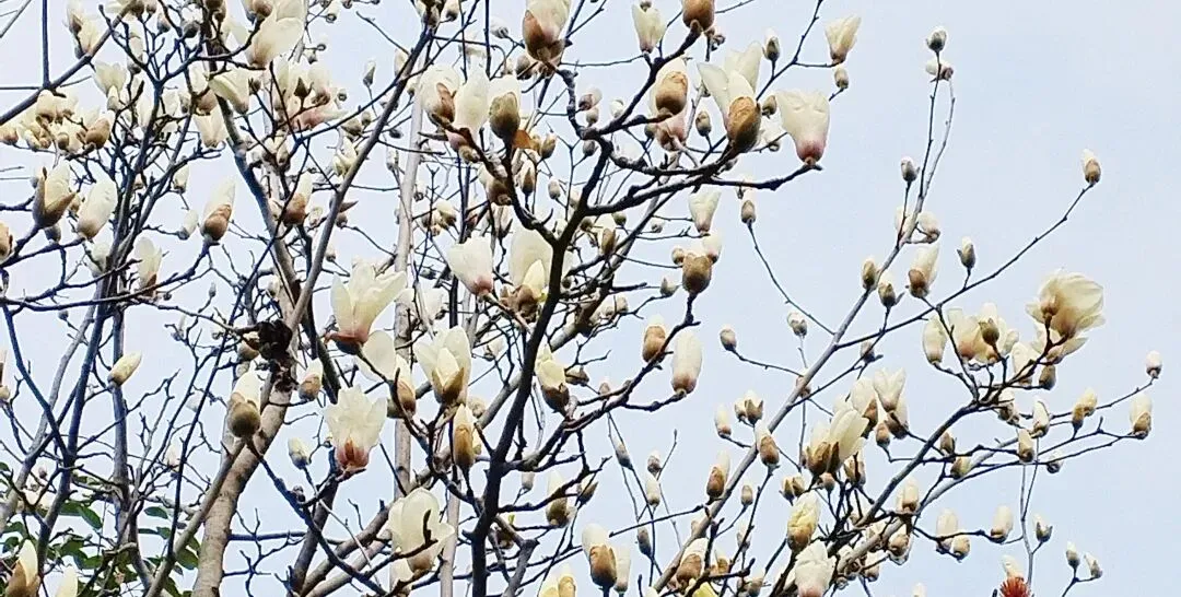 高大的玉兰树上前几日还是毛绒绒的花苞,今天已是繁花满树。圣洁的玉兰花,是我每年最盼的。它的纯洁和绰约风姿,文徵明用“绰约新妆玉有辉,素娥千队雪成围”来形容,最合我心中的形象。