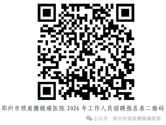 凡符合岗位招聘条件的应聘人员,自招聘信息发布之日起至2026年4月30日,使用手机微信扫描下方“郑州市颈肩腰腿痛医院2026年工作人员招聘报名表二维码”,进入网上报名小程序,按提示操作,在报名规定的时限内如实填写信息并完成提交。