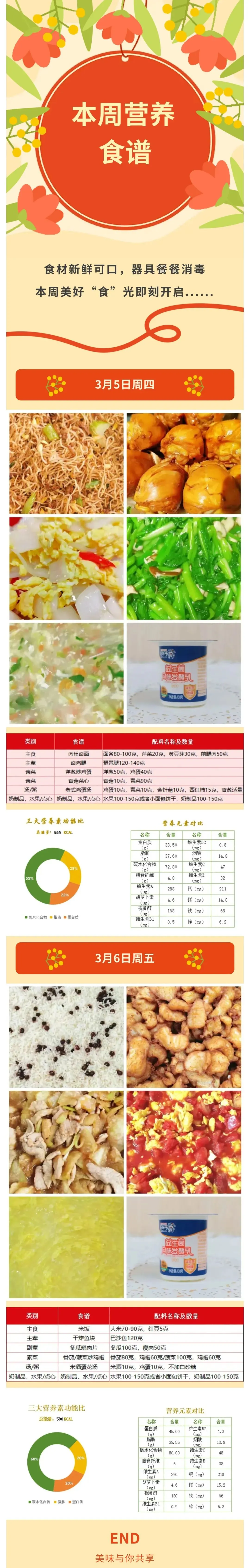 >【每周食谱】郑州高新区莲花街小学营养午餐食谱(3月5日-3月6日)