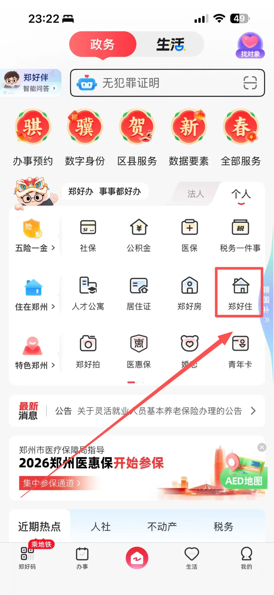 1️⃣进入郑好办APP,点击【郑好住】
