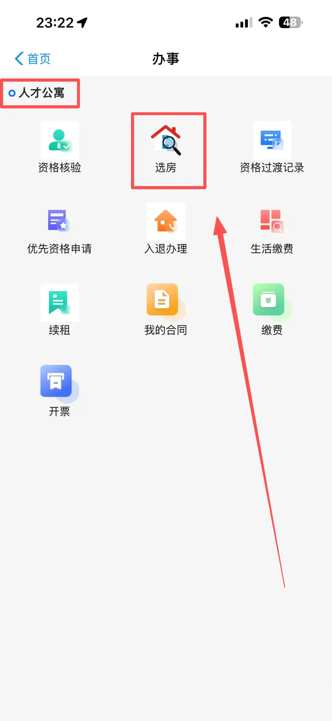 3️⃣选择【人才公寓】时,点击选房,即可查看目前有房源的公寓
