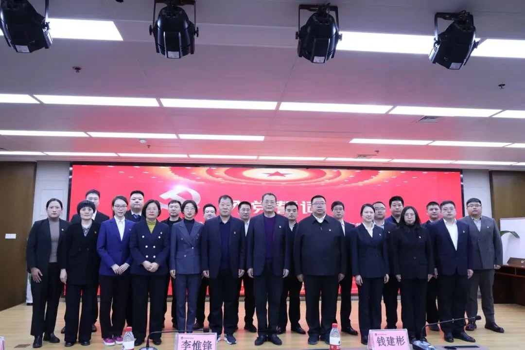 首先由钱建彬宣读预备党员名单。随后李惟锋、韩恩华、钱建彬为20名预备党员佩戴党员徽章。