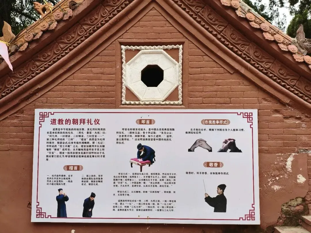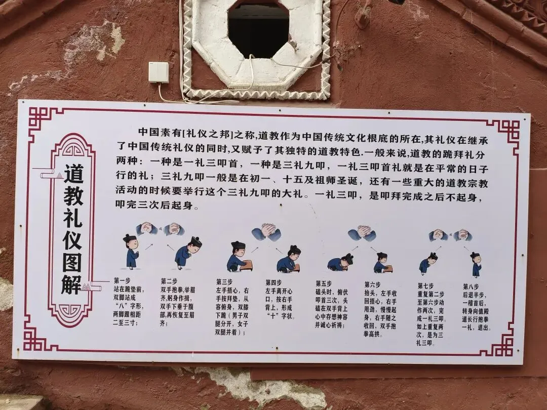 1.拱手礼(抱拳礼):常用于平辈相见。行礼时,双腿站直,双手抱拳(左手抱右手,象征扬善抑恶),举至胸前,微微躬身。这是最基本的道教礼节。